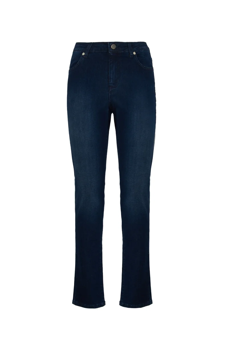 Il pantalone denim 5 tasche skinny di Nexos รจ pensato per valorizzare la silhouette con una linea aderente e confortevole. Realizzato in denim elasticizzato di qualitร superiore, assicura una vestibilitร slim che segue perfettamente le forme, garantendo al contempo libertร di movimento.