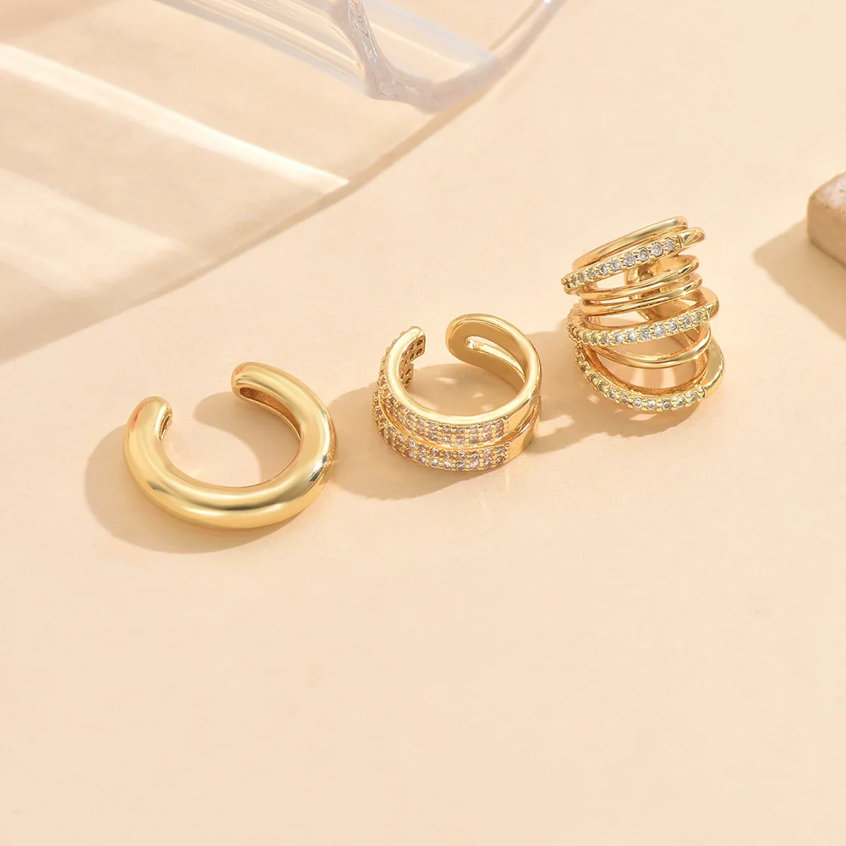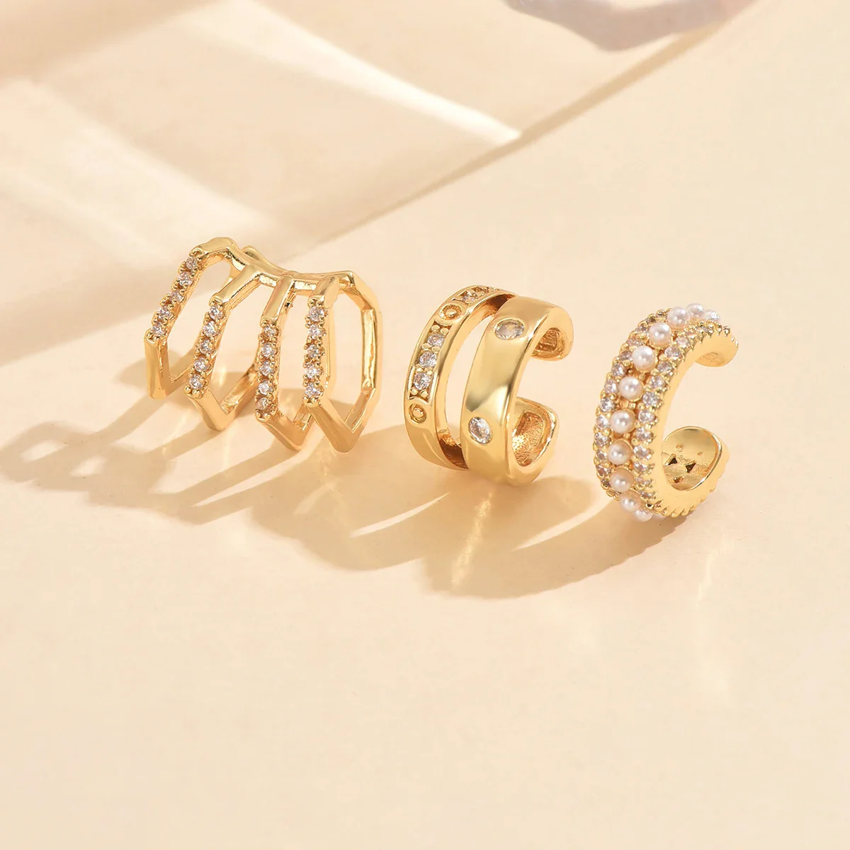 3pcs Gold Color Zircon Ear Clip Earrings Set