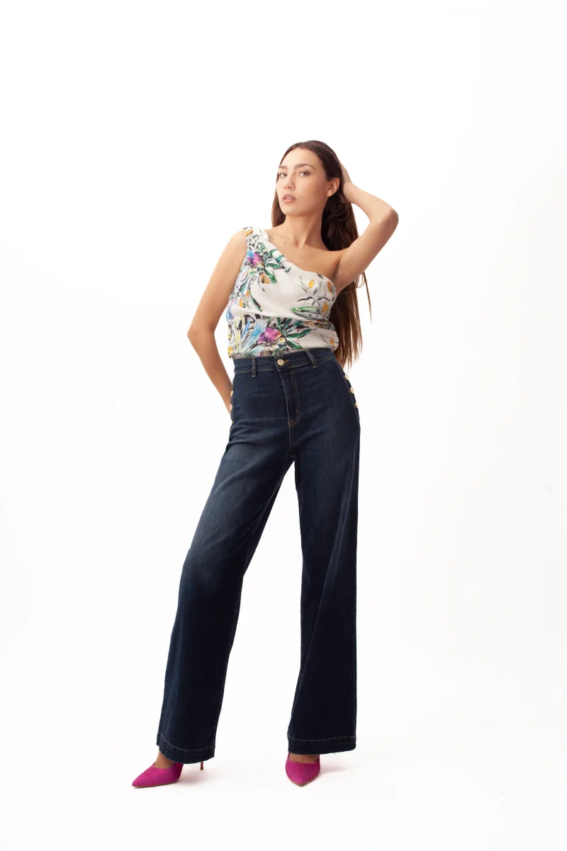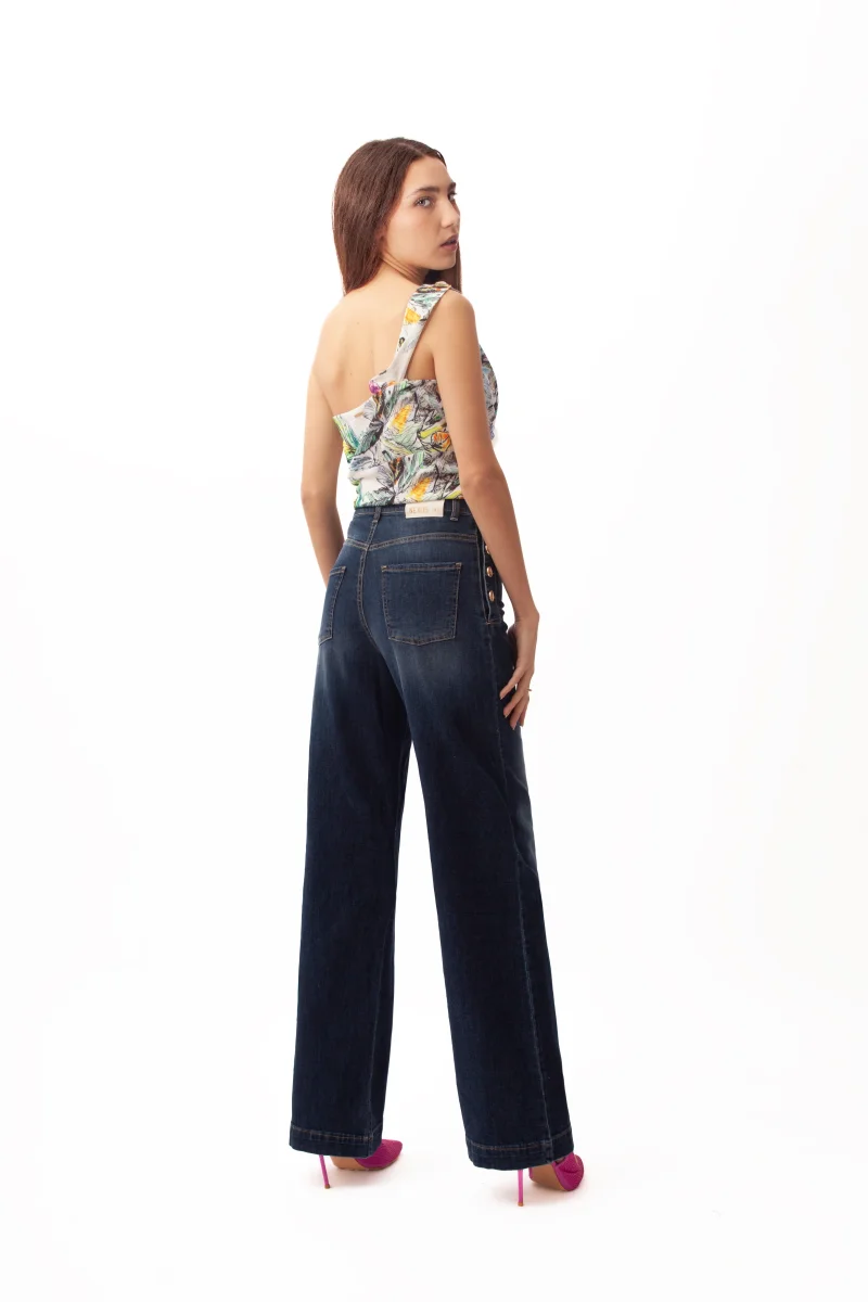 PANTALONE DENIM PALAZZO CON BOTTONI LATERALI