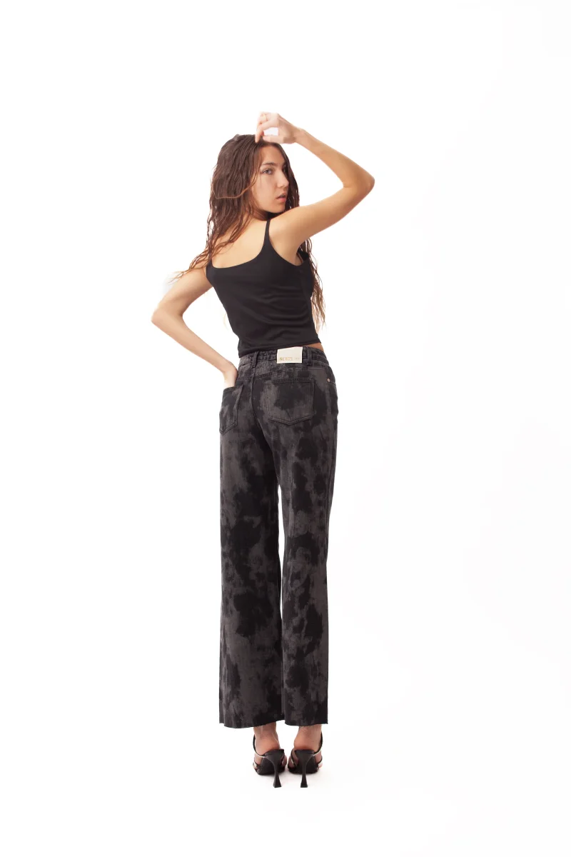 La vestibilitร regular garantisce comfort e facilitร di movimento, ideale per un uso quotidiano senza rinunciare allo stile. Le cinque tasche mantengono la funzionalitร tipica del jeans, mentre il trattamento stampato conferisce un tocco di modernitร e dinamismo.