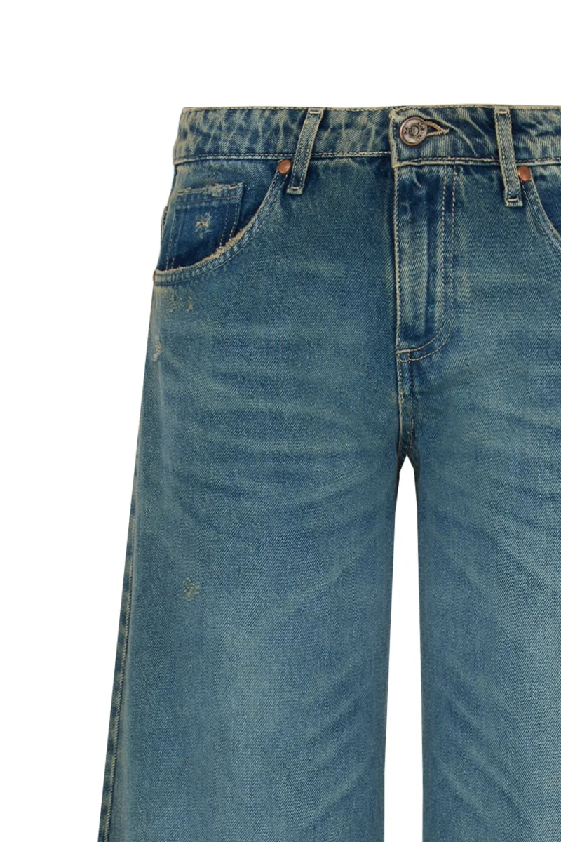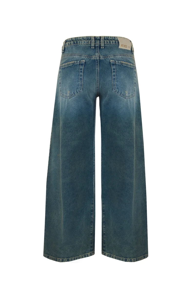 Le cinque tasche classiche richiamano la tradizione del jeans, mentre il taglio moderno dona al pantalone unโidentitร forte e versatile. Ideale per chi cerca uno stile che unisce il gusto vintage alle tendenze contemporanee, รจ perfetto da abbinare a t-shirt over o giubbotti in denim della collezione Nexos.