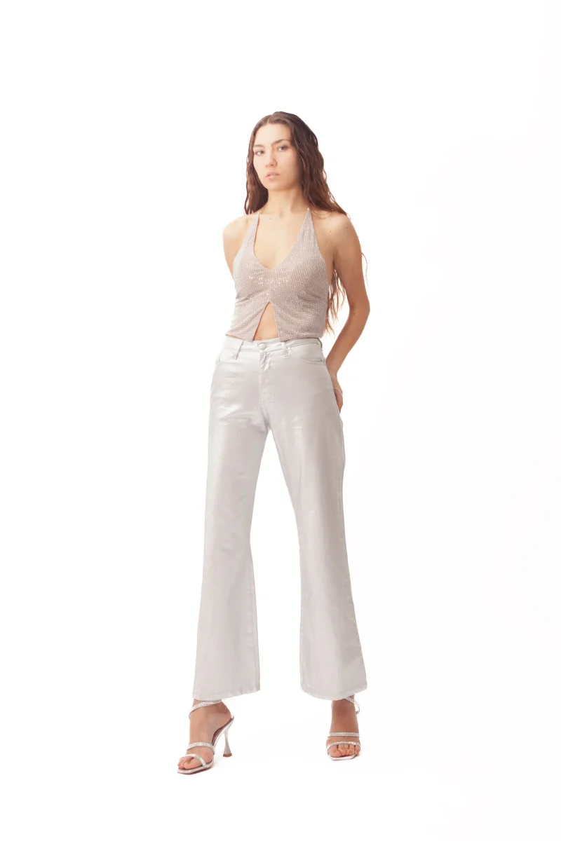 PANTALONE 5 TASCHE PALAZZO LAME’ ARGENTO