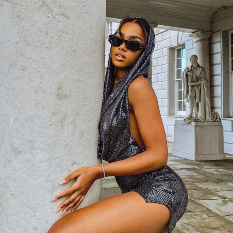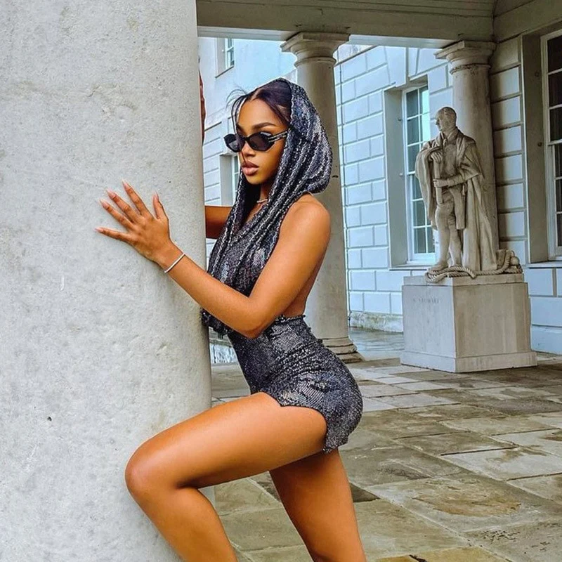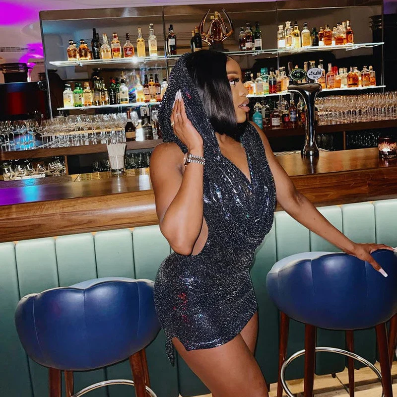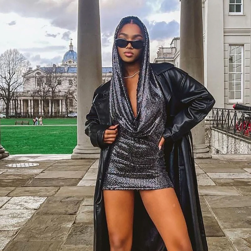 Abito corto hoodie paillettes donna