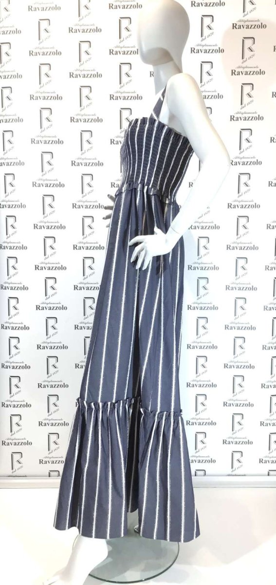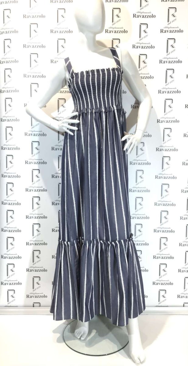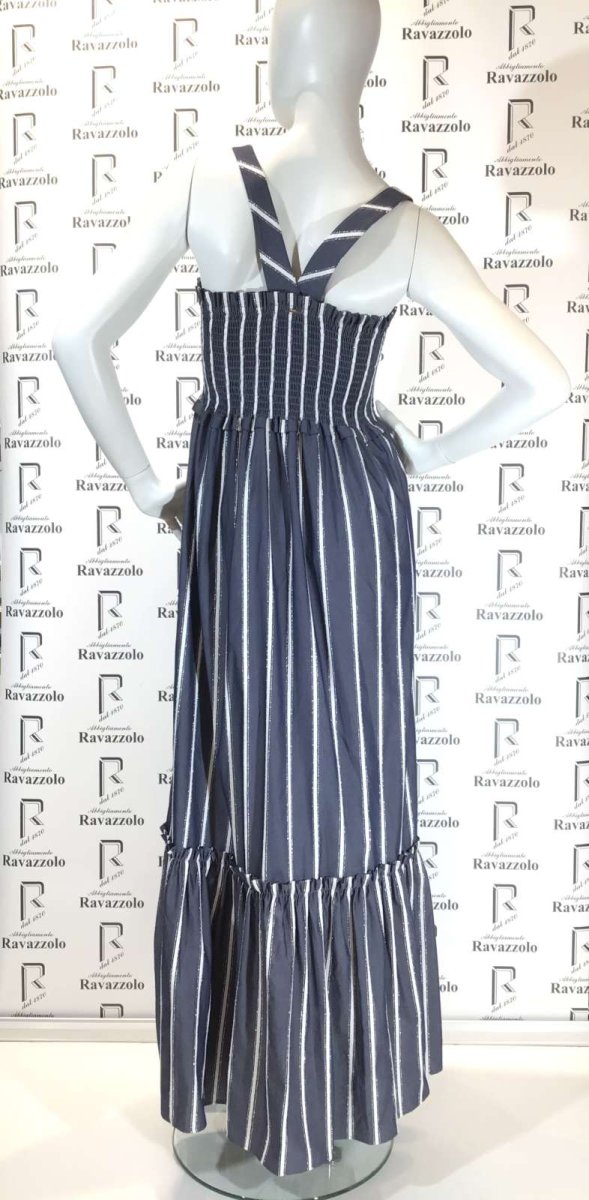 LIU JO mod. UA1084-D4601 abito donna lungo, chambry, bustino elasticizzato arricciato con spalline fine, fondo della gonna con balza ed inserti in lurex.