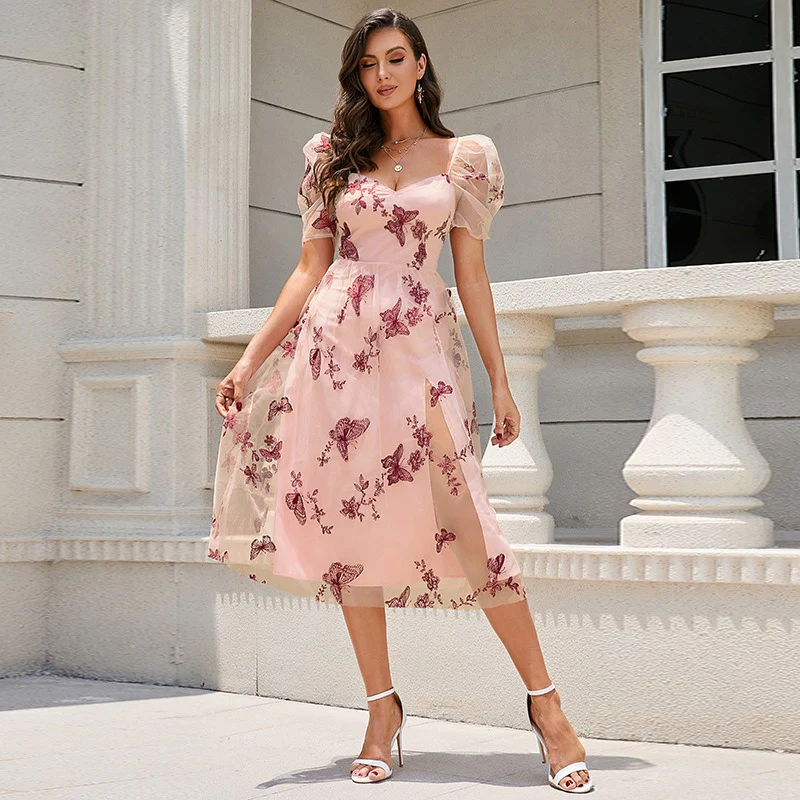 Abito lungo fiorato con spacco