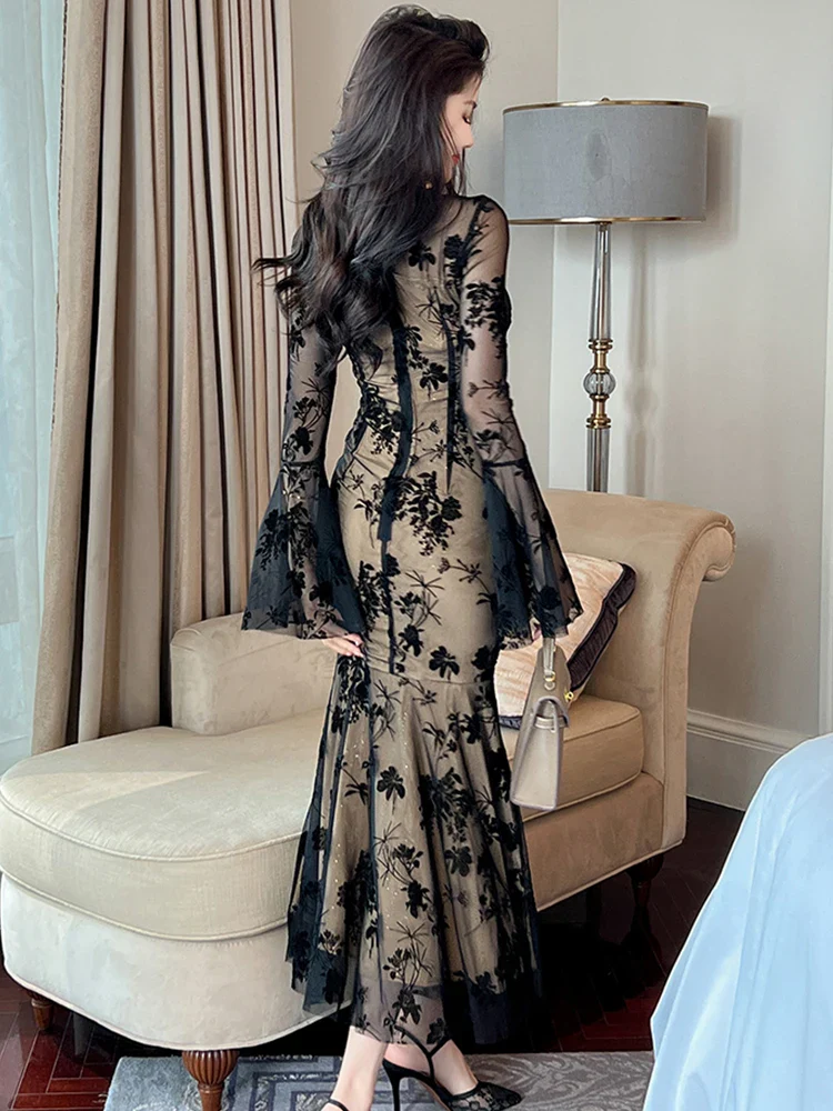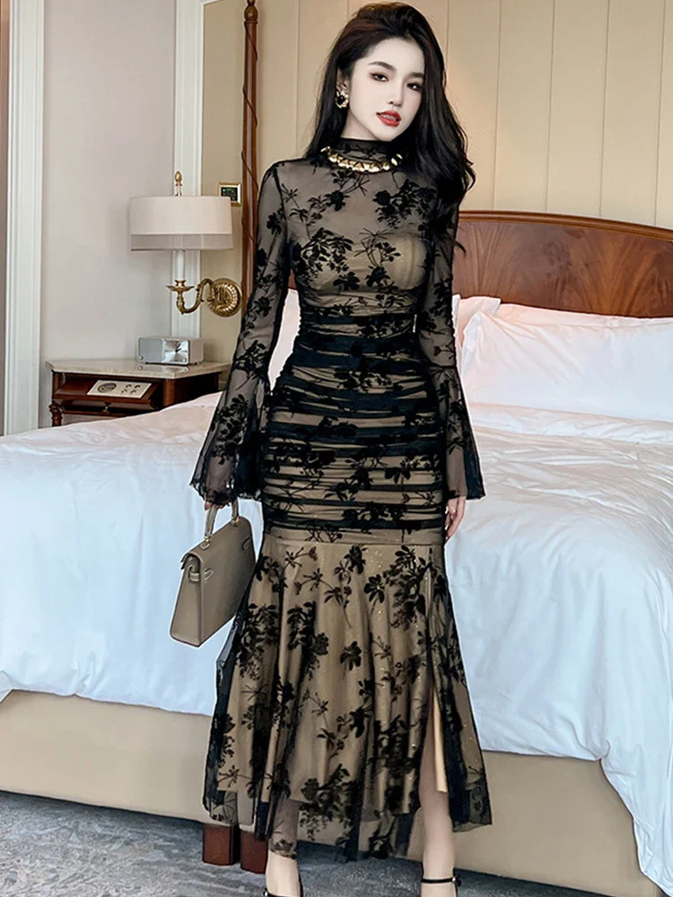 Abito lungo romantico pizzo donna