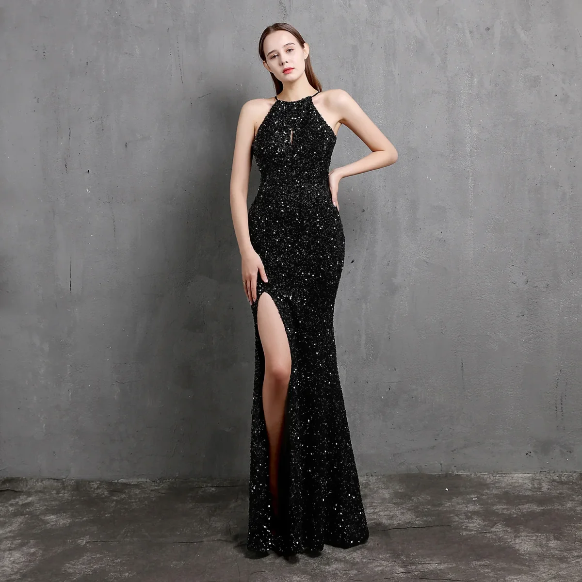 Abito Lungo shiny donna con spacco