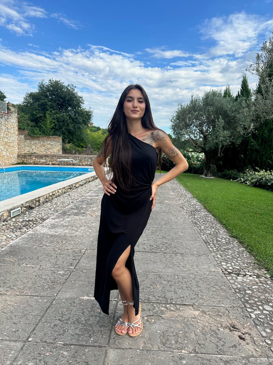 Abito monospalla con cut out laterale e spacco taglia unica, vestibilitรก 38-44