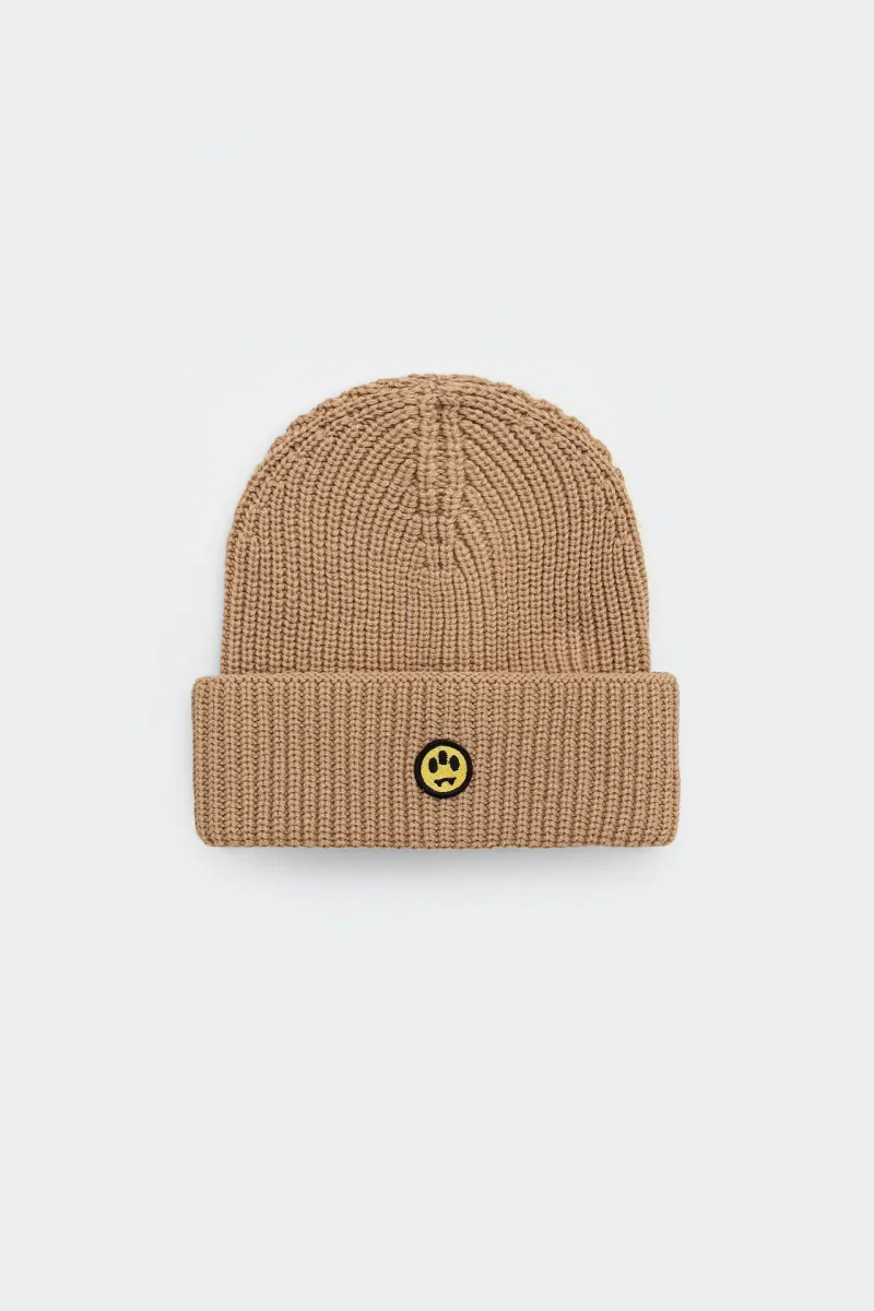 Beanie in maglia a coste con patch ricamato sul fronte Barrow. LANA 50% ACRILICO 50% MADE IN ITALY