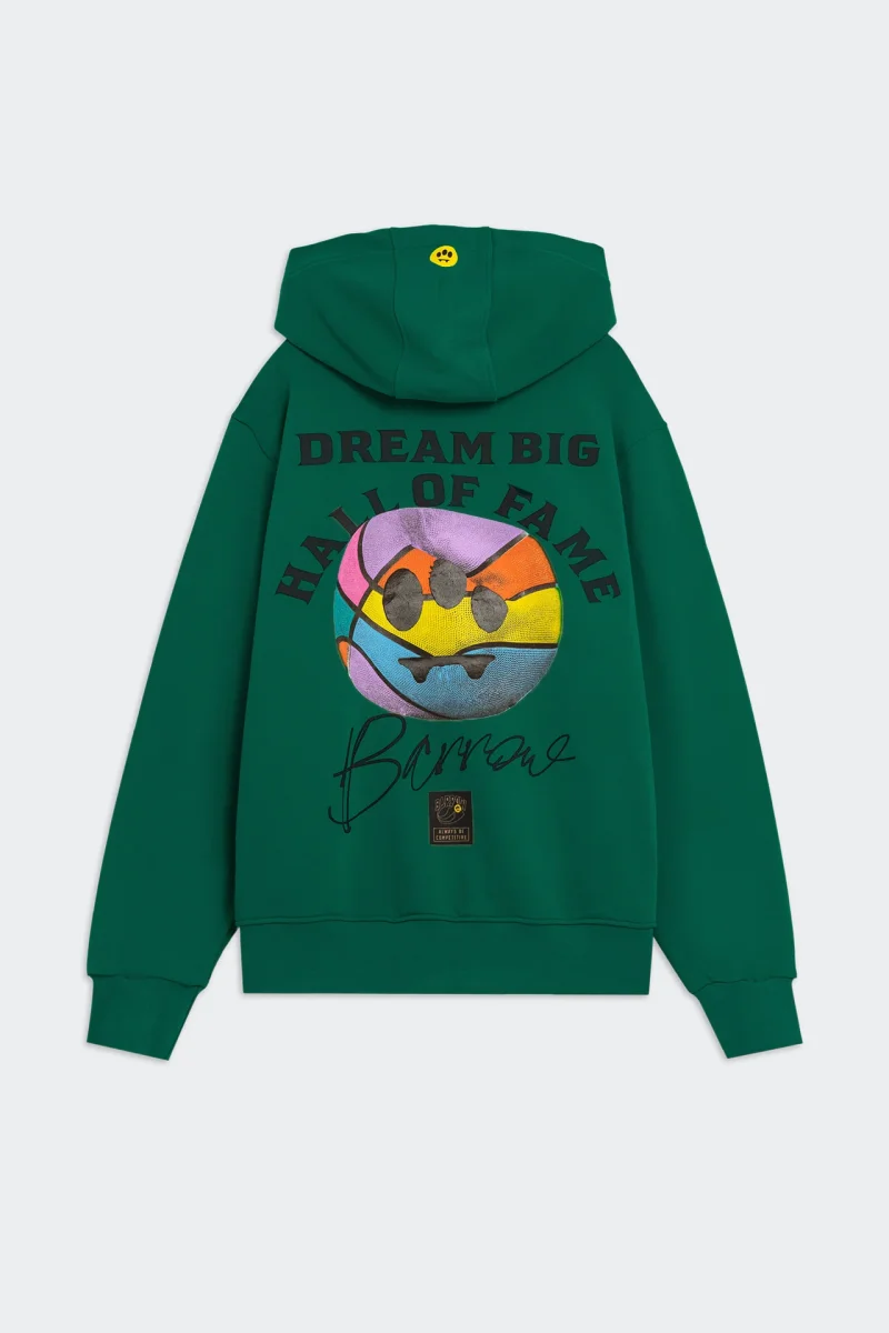 Felpain 100% cotone con cappuccio. Piccola scritta Barrow sul fronte e maxi stampa sul retro “Dream Big Hall of Fame” COTONE 100% MADE IN ALBANIA