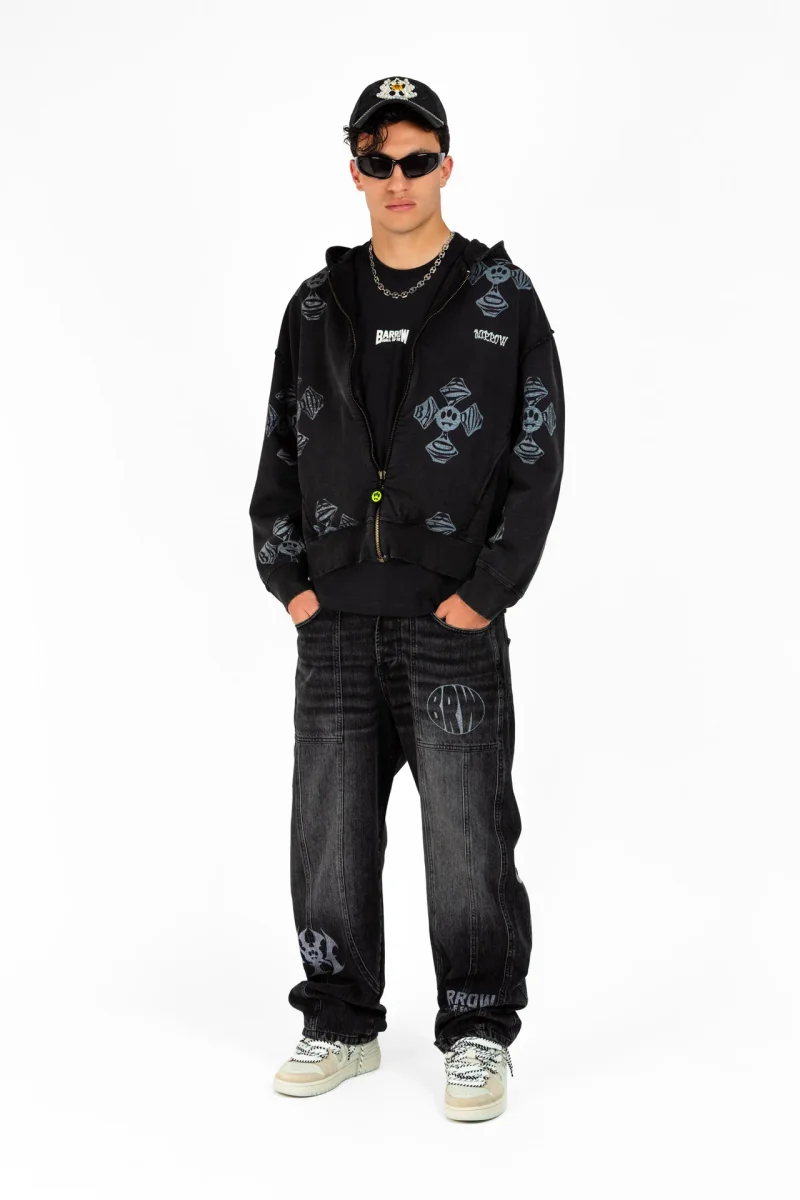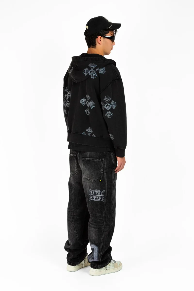 Felpa con cappuccio in 100% cotone dal fit morbido. Fronte con zip centrale e logo Barrow ricamato. Tutta la superficie รจ caratterizzata da croci bianche a contrasto con effetto washed. Label Barrow applicata sul cappuccio. COTONE 100% Made in: MADE IN INDIA
