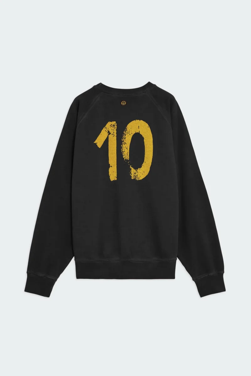 Felpa in cotone dal fit morbido con girocollo. Il fronte รจ caratterizzato da una grafica BARROW a contrasto con effetto decorativo e finiture distressed che donano un look vissuto e originale. La superficie del capo presenta lavorazioni e dettagli applicati che arricchiscono il design. Il retro รจ definito da una maxi stampa numerica โ10โ