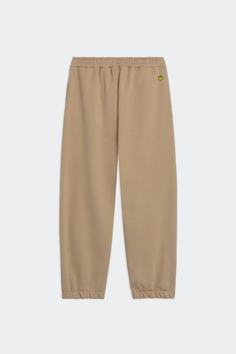 Pantaloni in felpa 100% cotone con vestibilitร regolare e fondo elasticizzato. Logo BARROW stampato sul fronte e patch smile applicata sulla tasca posteriore. Vita elastica e tasche laterali.