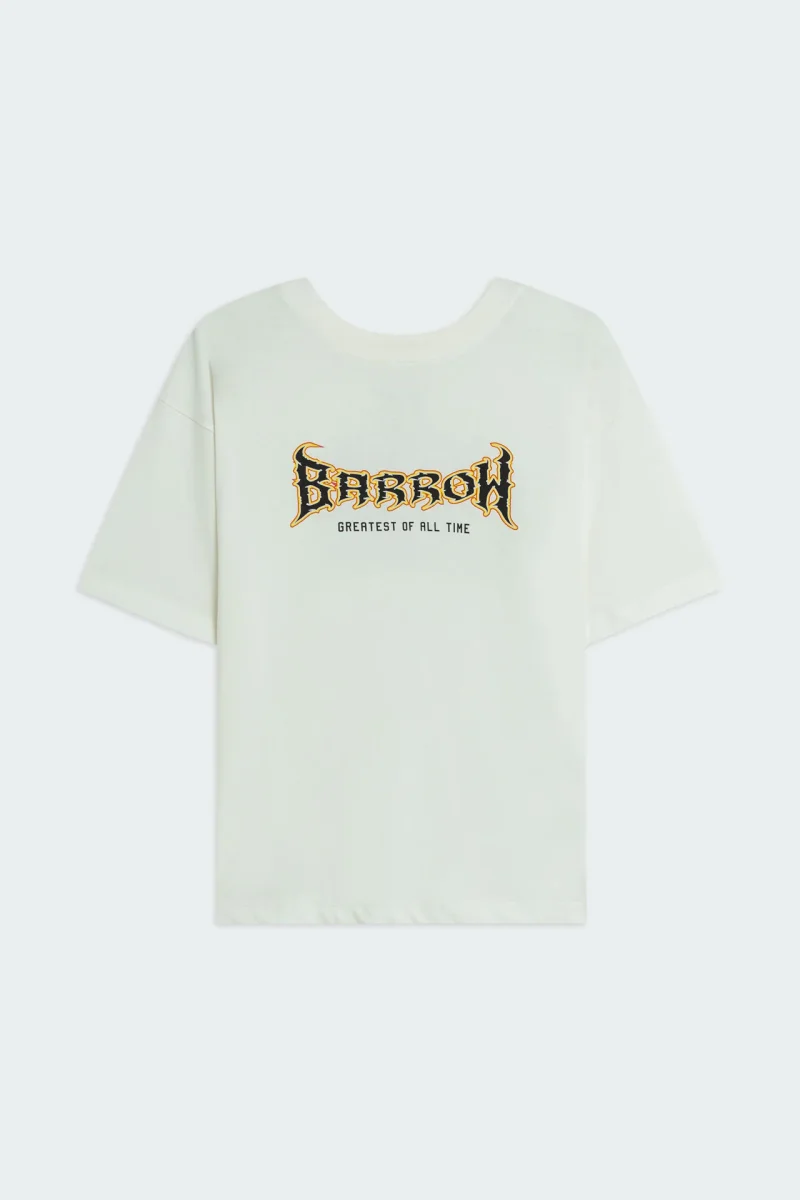 T-shirt in 100% cotone dal fit morbido con girocollo e maniche corte. Il fronte รจ caratterizzato da una stampa centrale BARROW a contrasto con lettering grafico e scritta โGreatest of All Timeโ, che dona al capo unโestetica decisa e contemporanea mantenendo uno stile essenziale. La t-shirt puรฒ essere utilizzata indossandola in entrambi i lati.