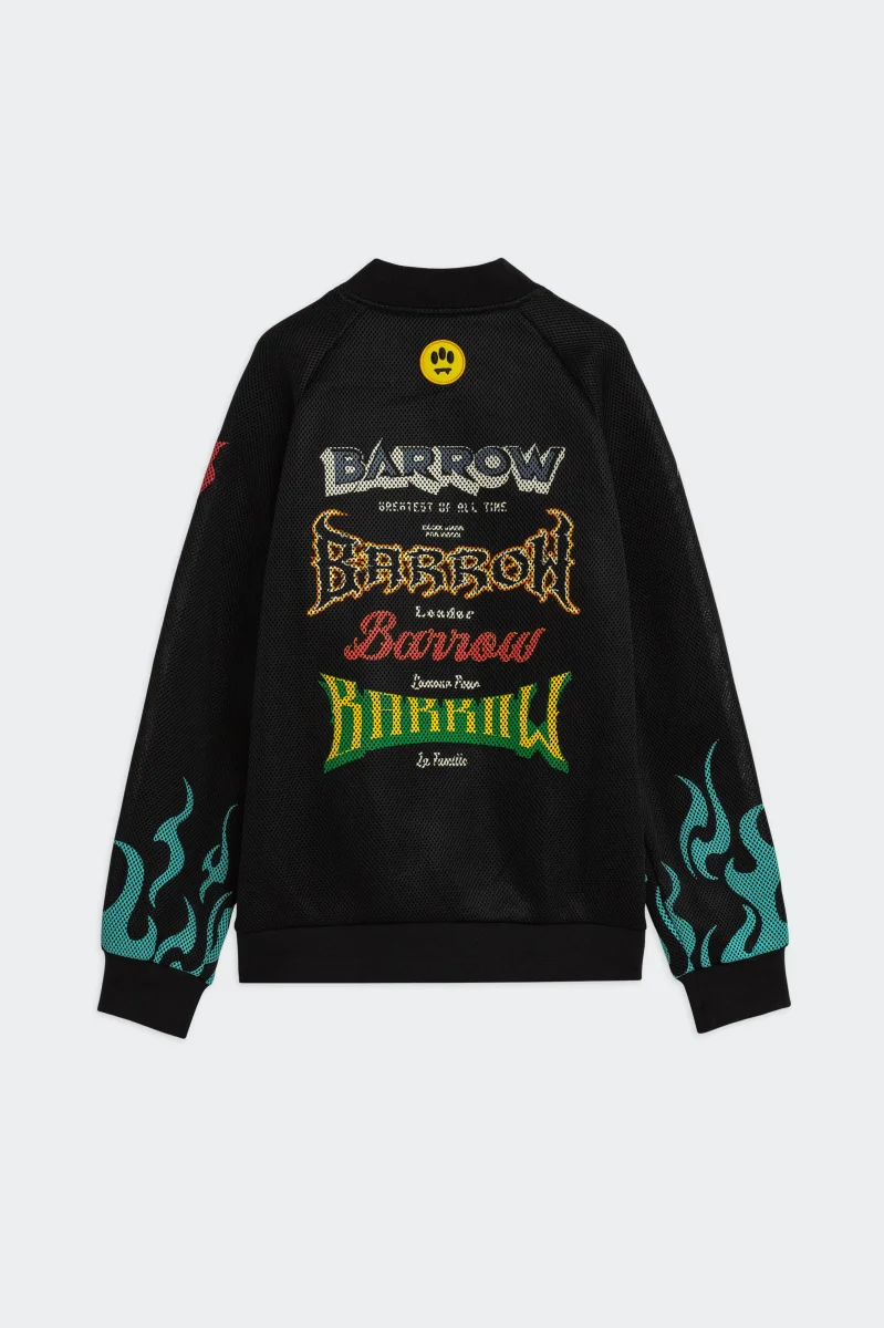 Bomber con zip in mesh 3D, foderato. Vestibilitร comoda. Chiusura frontale con zip, tasche laterali e bordi rifiniti a costine. Stampe grafiche e patch applicate sul davanti e sulle maniche con logo Barrow e dettagli iconici. POLIESTERE 100% MADE IN CHINA