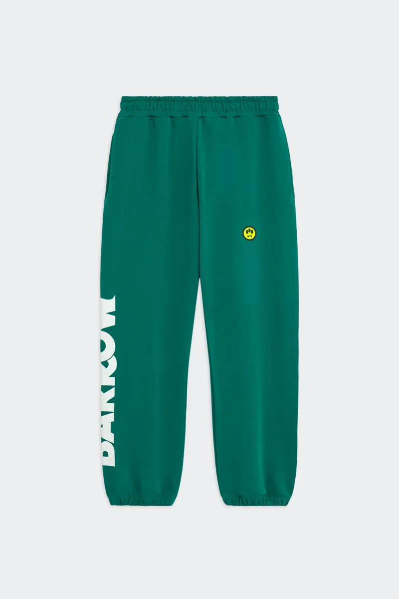 Pantaloni in felpa 100% cotone con fit regular e fondo elasticizzato. Stampa logo BARROW oversize lungo la gamba e patch iconica smile applicata sul fronte. Tasca posteriore applicata.
