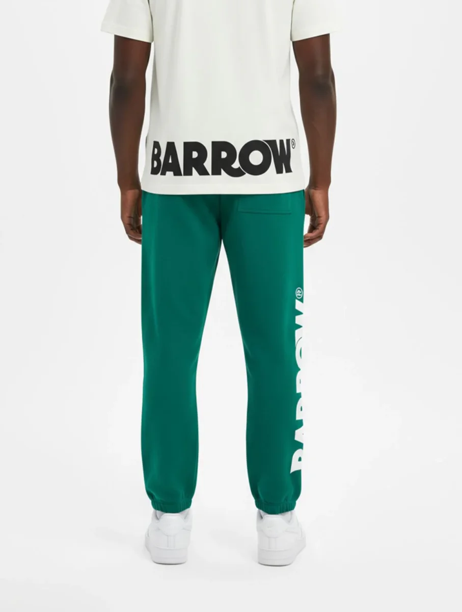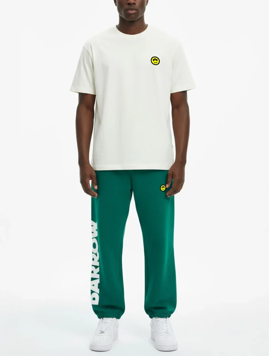 Pantaloni in felpa 100% cotone con fit regular e fondo elasticizzato. Stampa logo BARROW oversize lungo la gamba e patch iconica smile applicata sul fronte. Tasca posteriore applicata. COTONE 100% MADE IN ALBANIA