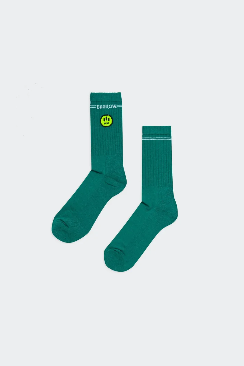 Calzini in spugna di cotone. Caratterizzati da logo Barrow a contrasto e smile iconico ricamato sulla caviglia. Riga nera a contrasto sul retro. COTONE 80% – POLIAMMIDE 17% – ELASTANE 3% MADE IN ITALY