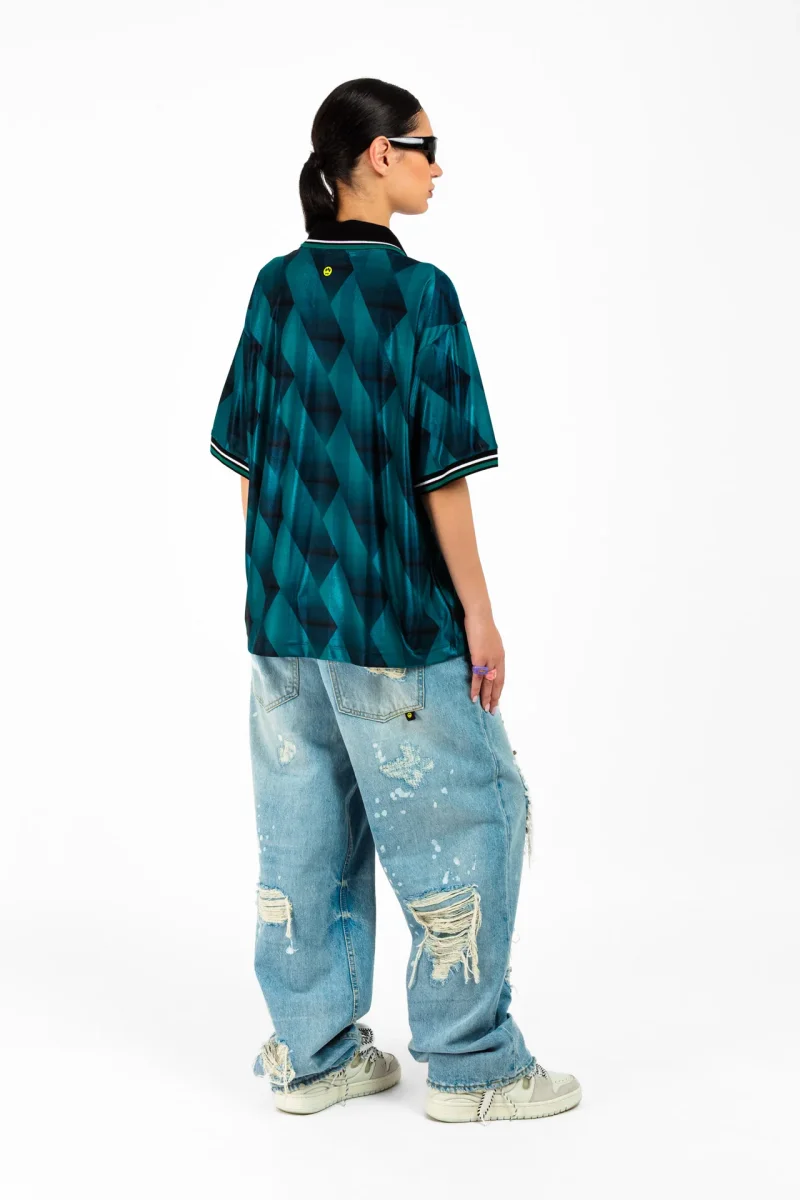 T-shirt in 100% poliestere effetto jersey tecnico dal fit morbido con colletto a polo.