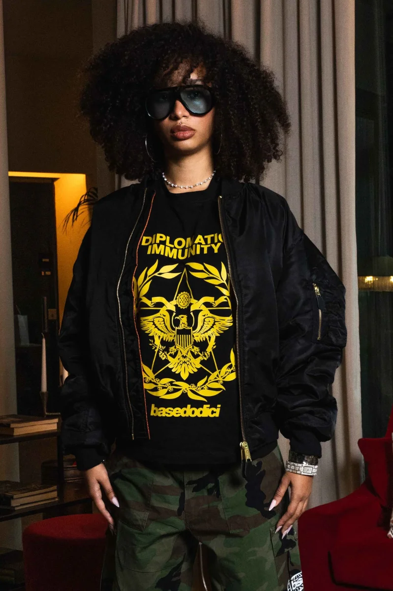 Bomber Jacket Chiusura con zip Colletto e polsini a coste elasticizzati Stampa DTF termo applicata Nylon 100% Made in Italy Modello 185 cm, taglia XL Modella 167 cm, taglia M Lavare e stirare al rovescio, max 30ยฐC Unisex product