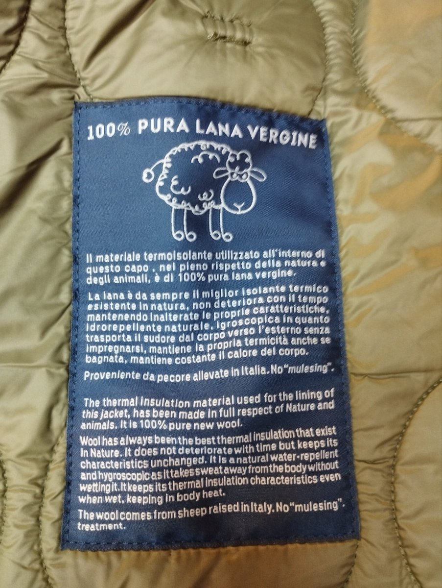 Bomber in nylon trapuntato, con membrana interna in pura lana vergine.