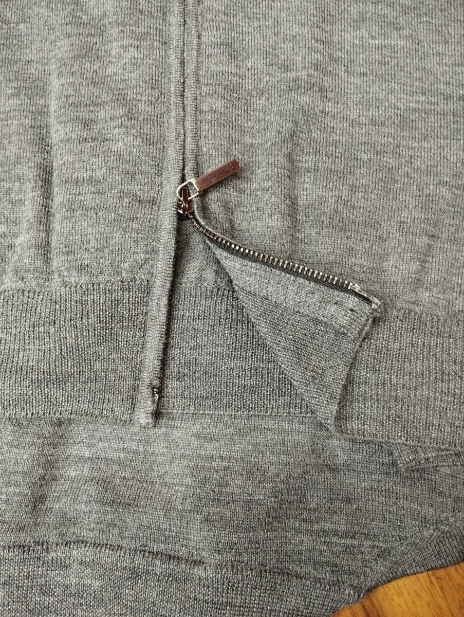 Maglia full zip in lana Pukaki, ottenuta da un filato di lana Merino Super 140’s proveniente dalla Nuova Zelanda. Zip a doppio cursore.