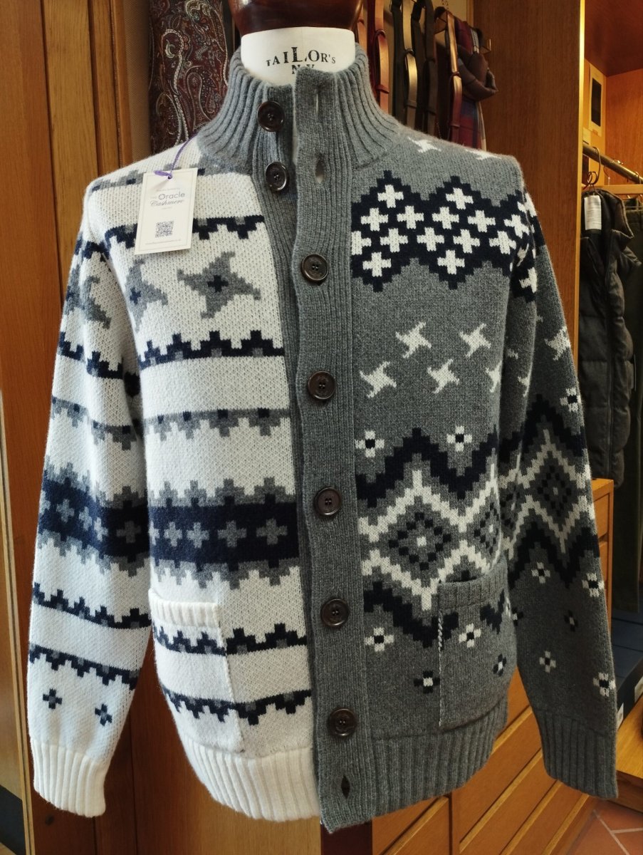 Bomber in lana e cashmere a due fili, con lavorazione a “Jacquard”.
