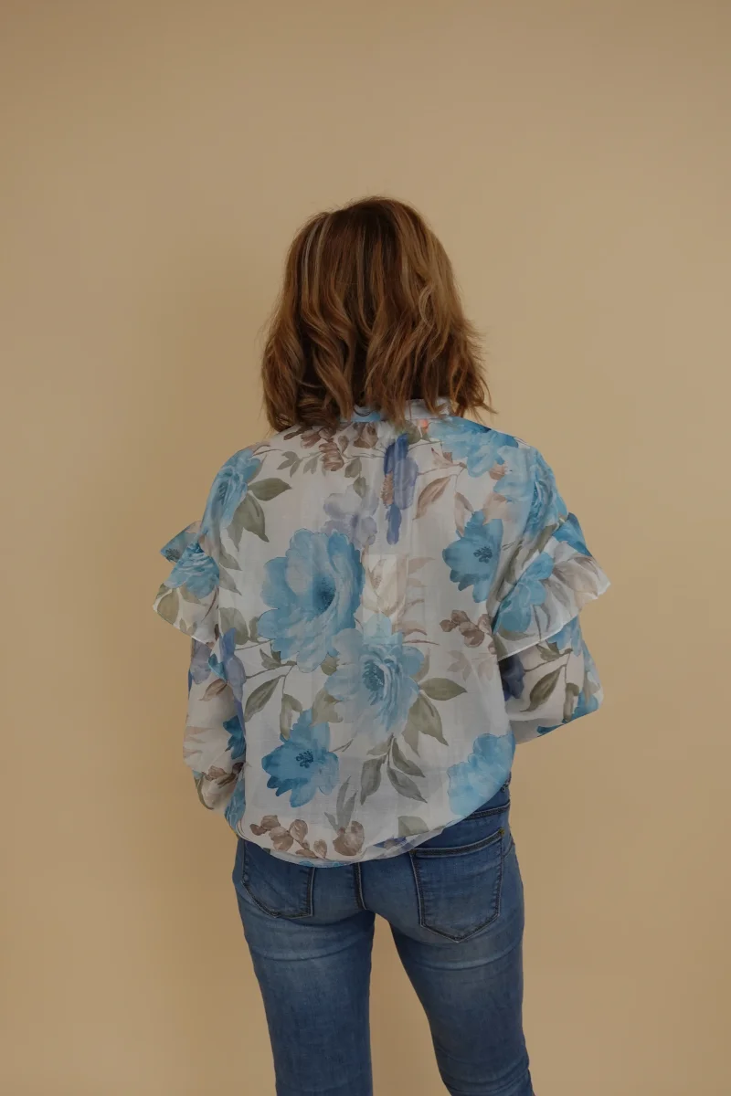 Camicia velata con voulant in fantasia floreale