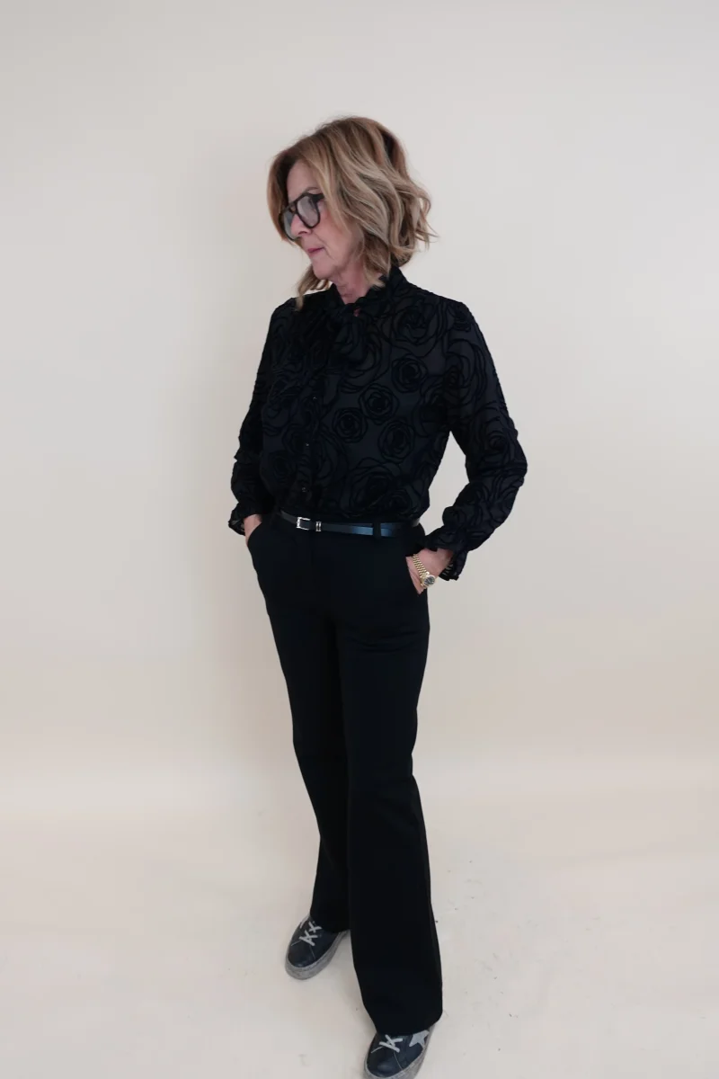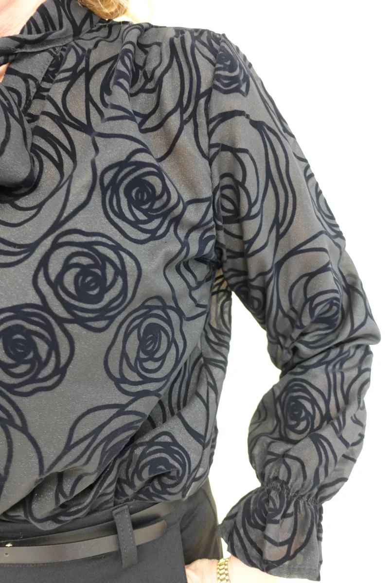 Camicia semitrasparente con ricami in velluto, fiocco sul davanti