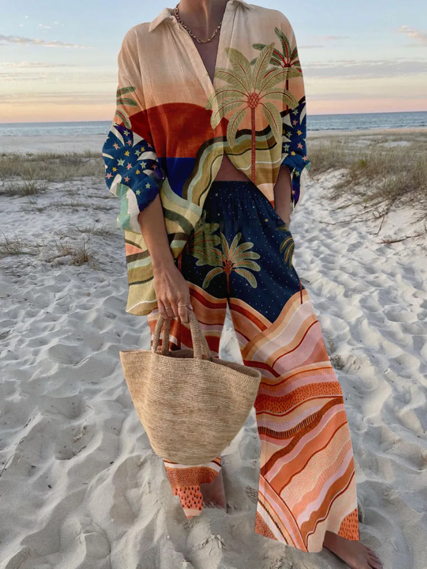 Fashion Print Beach Holiday 2-Piece Set Women