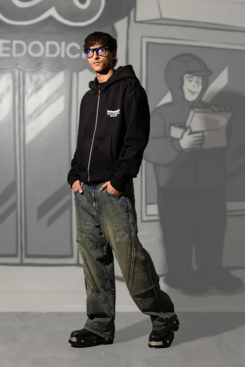 Zip Hoodie Boxy Fit Zip frontale Cappuccio doppio strato a cuciture coperte Polsini e vita elasticizzati per un fit piรน comodo Stampa termo-applicata DTF Cotton/Poly Blend – 420gsm Made in italy Lavare e stirare al rovescio, max 30ยฐC Unisex product