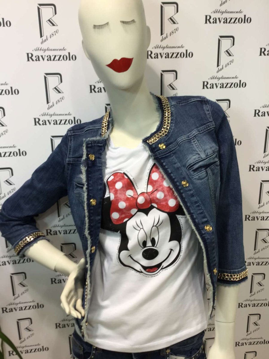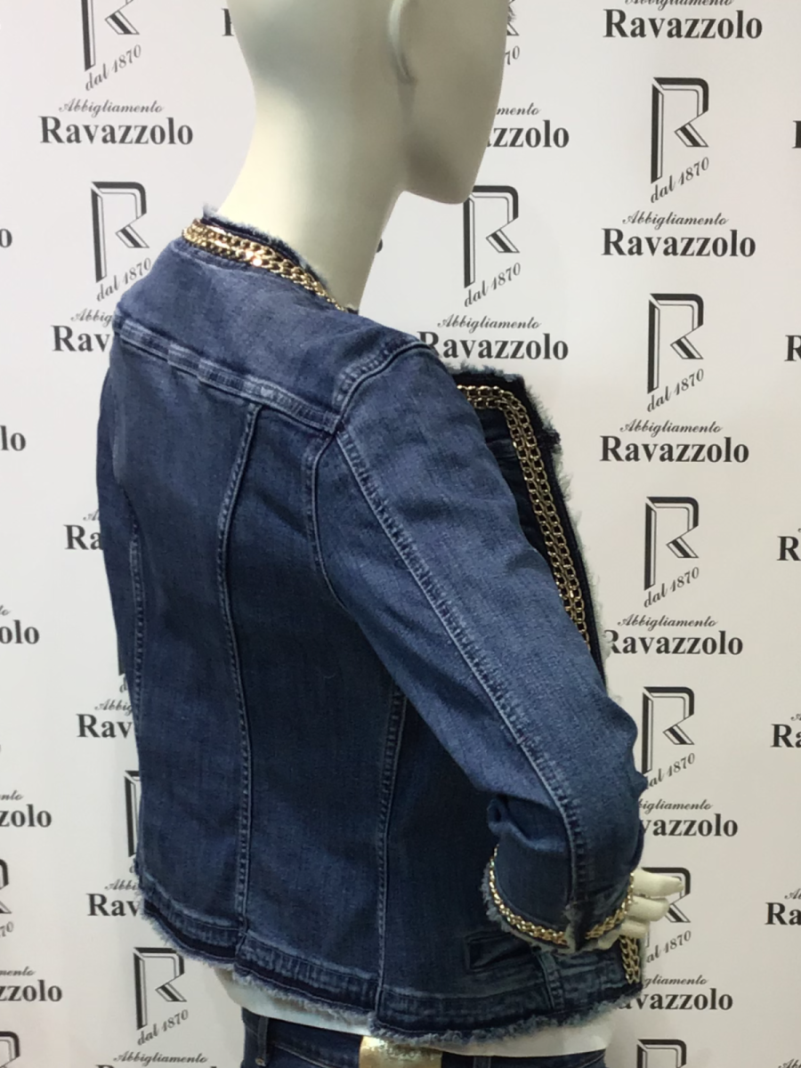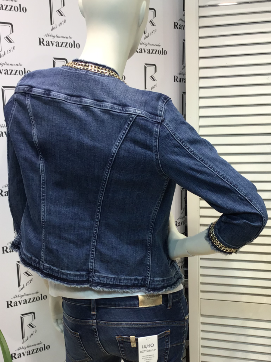 LIU-JO mod. UXX039D4128 Kate giacca in jeans con catenella dorata e maniche a tre quarti e 4 taschini davanti