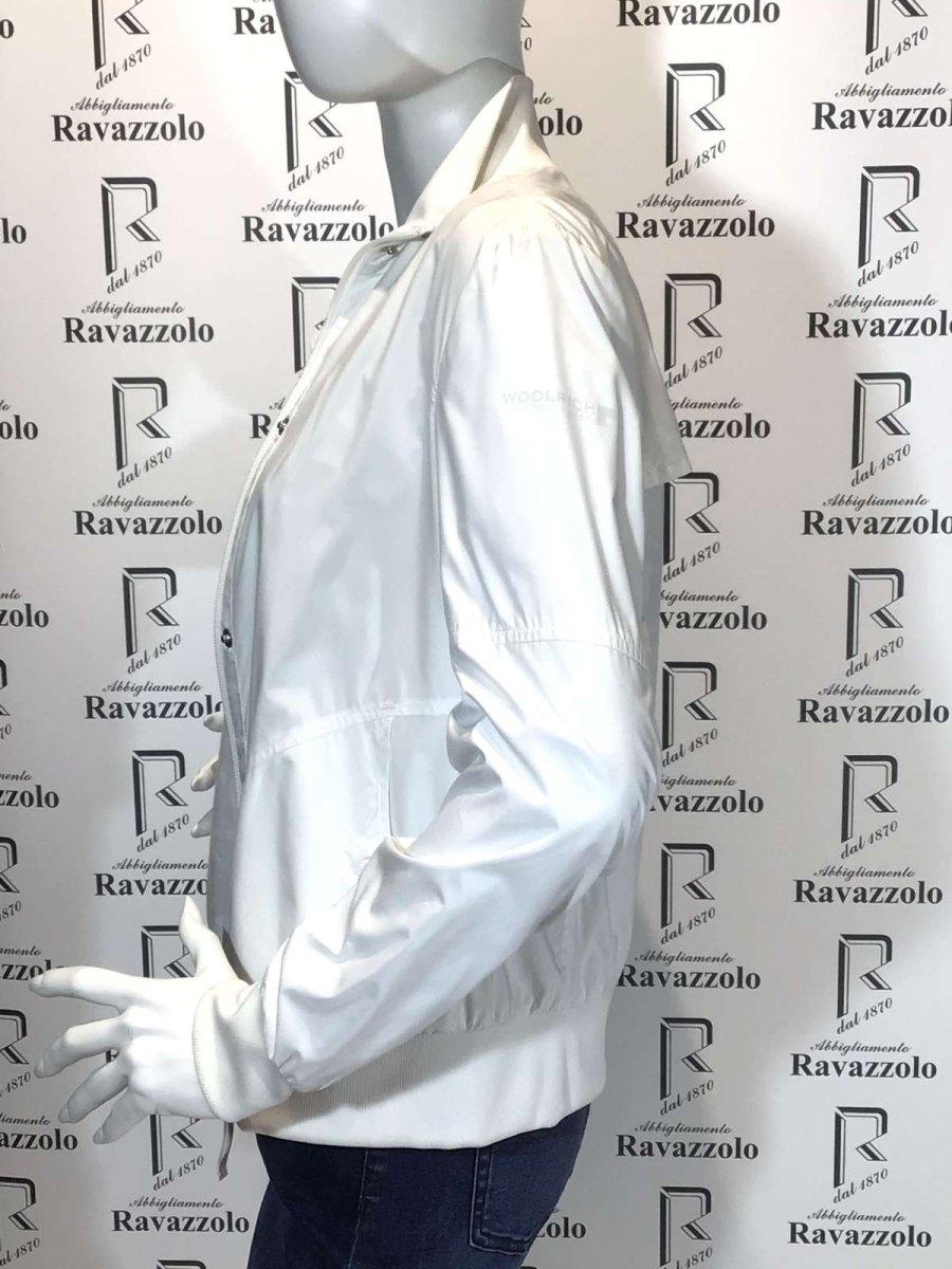 WOOLRICH mod. WWCPS1520 W’S GREEN BAY BOMBER col.bianco , bomber donna in microfibra ultra light, colletto e polsino in cotone stretch, ampia tasca frontale.