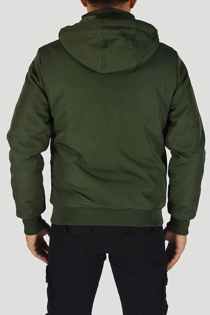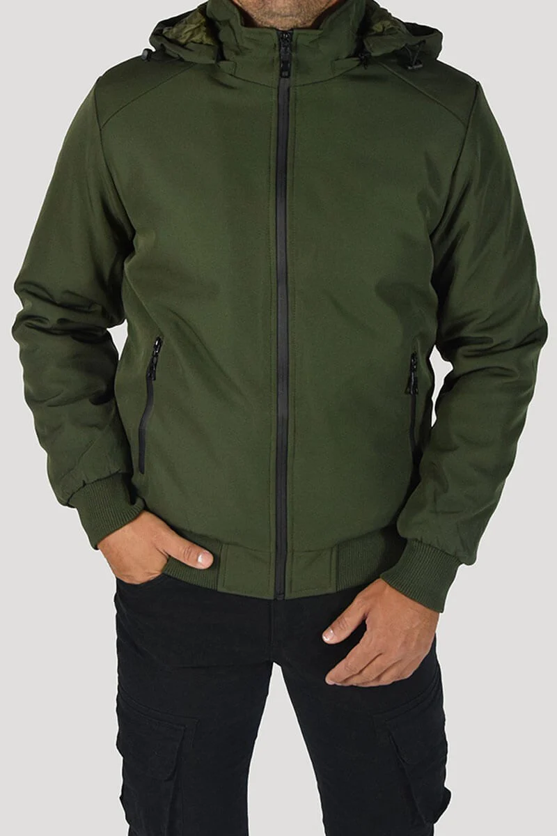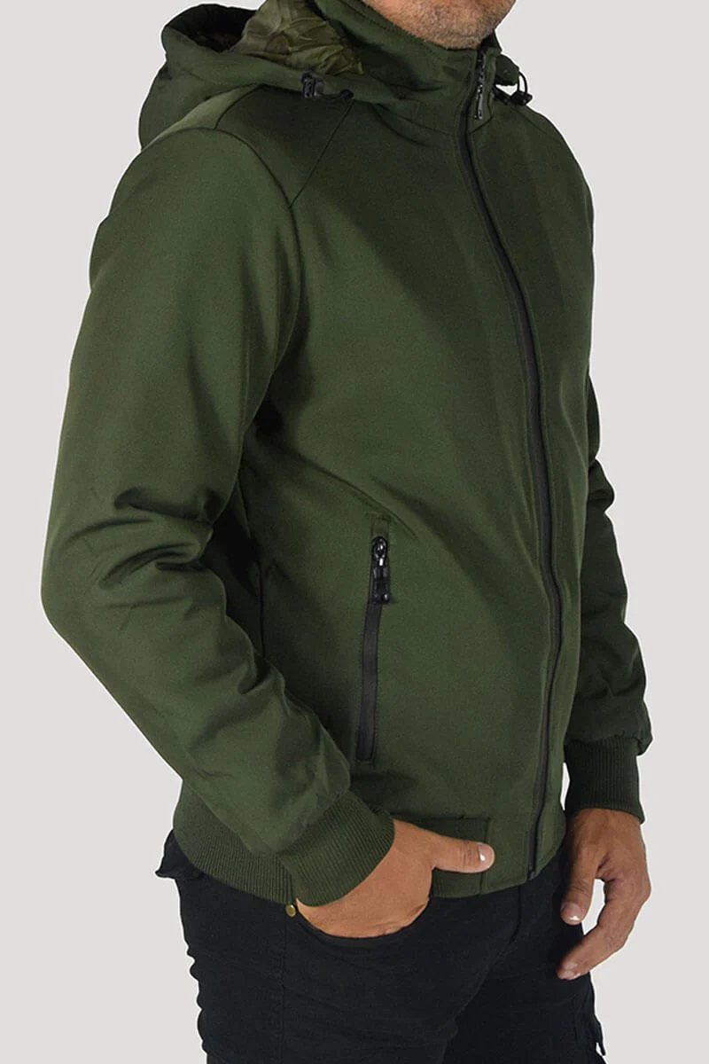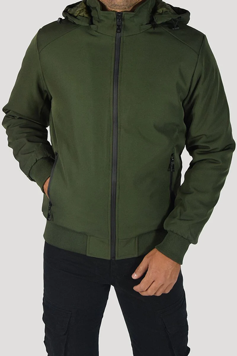 GIUBBOTTO CON CAPPUCCIO COLORE: Verde COMPOSIZIONE: 95% Poly 5% Elastan RIFERIMENTO TAGLIA: Il modello in foto รจ alto 1,80 per 78kg e indossa la taglia M