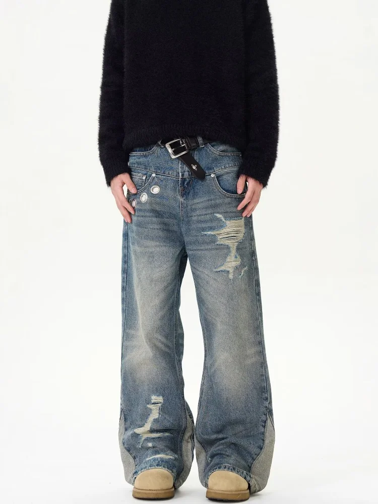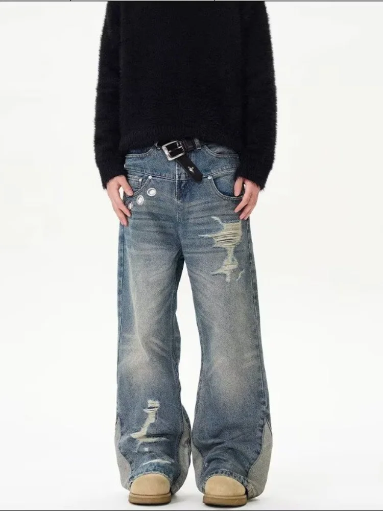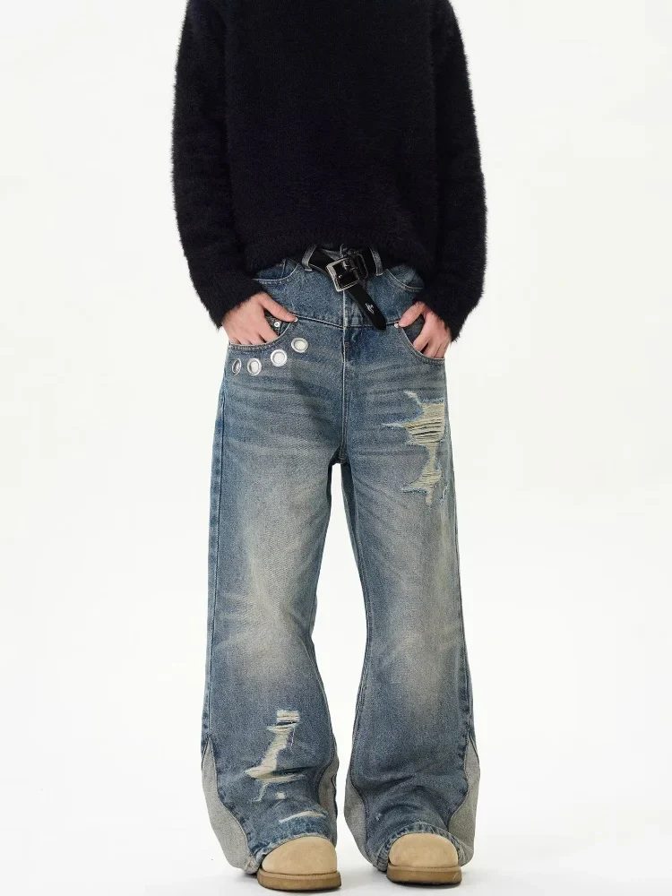 Jeans Lavato Blu Baggy Strappato