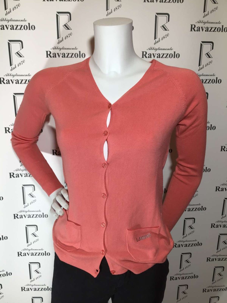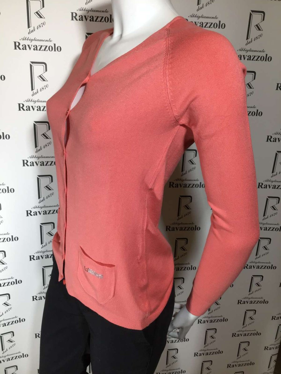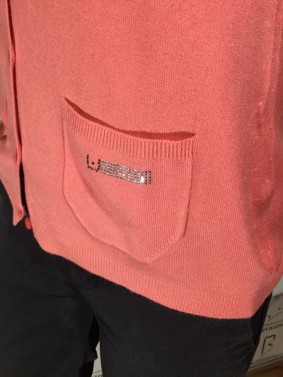 LIU JO, mod. W14004-M361, cardigan donna in viscosa, mano setosa elasticizzata, manica raglan con particolare calatura su giro manica e mini tasche applicate con logo in Swarovski. PREZZO SPECIALE!!