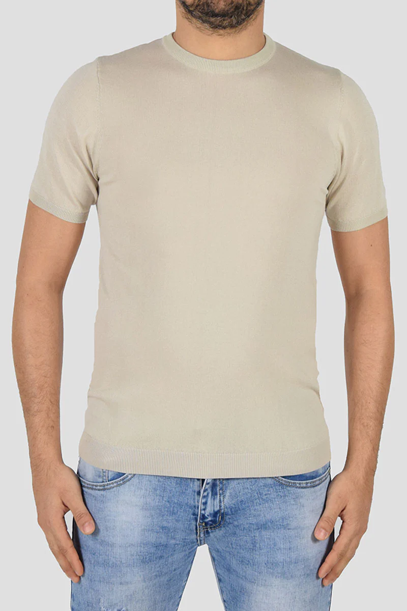 Maglia in filo a manica corta COLORE: Beige COMPOSIZIONE: 80% Viscosa 20% Poly RIFERIMENTO TAGLIA: Il modello in foto รจ alto 1,80 per 78kg e indossa la taglia M