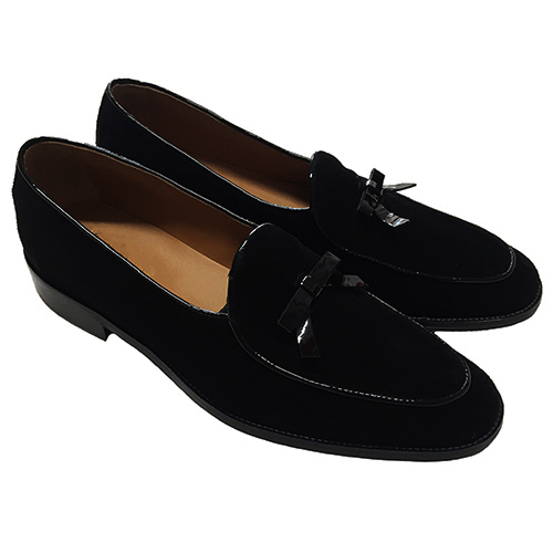 Scarpe uomo mocassino in camoscio modello con fiocco, disponibili nei colori riferimento cartella in foto, realizzate su ordinazione personalizzabili anche con iniziali sul lato con costo aggiuntivo di 15,00 euro