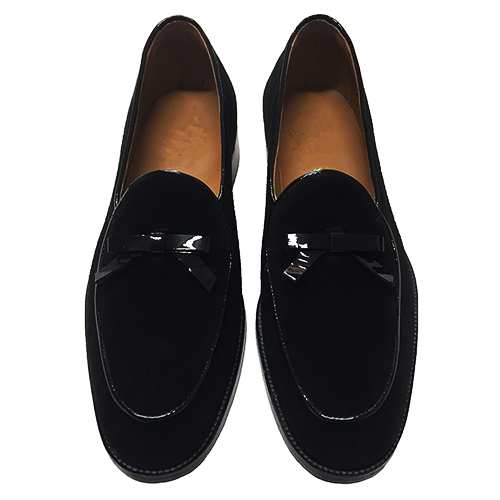 Mocassini cerimonia in velluto con fiocco
