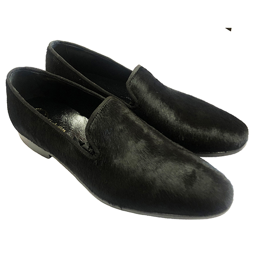 Mocassino slippers in cavallino nero disponibili nei colori riferimento in foto, realizzate su ordinazione personalizzabili anche con iniziali sul lato con costo aggiuntivo di 15,00 euro