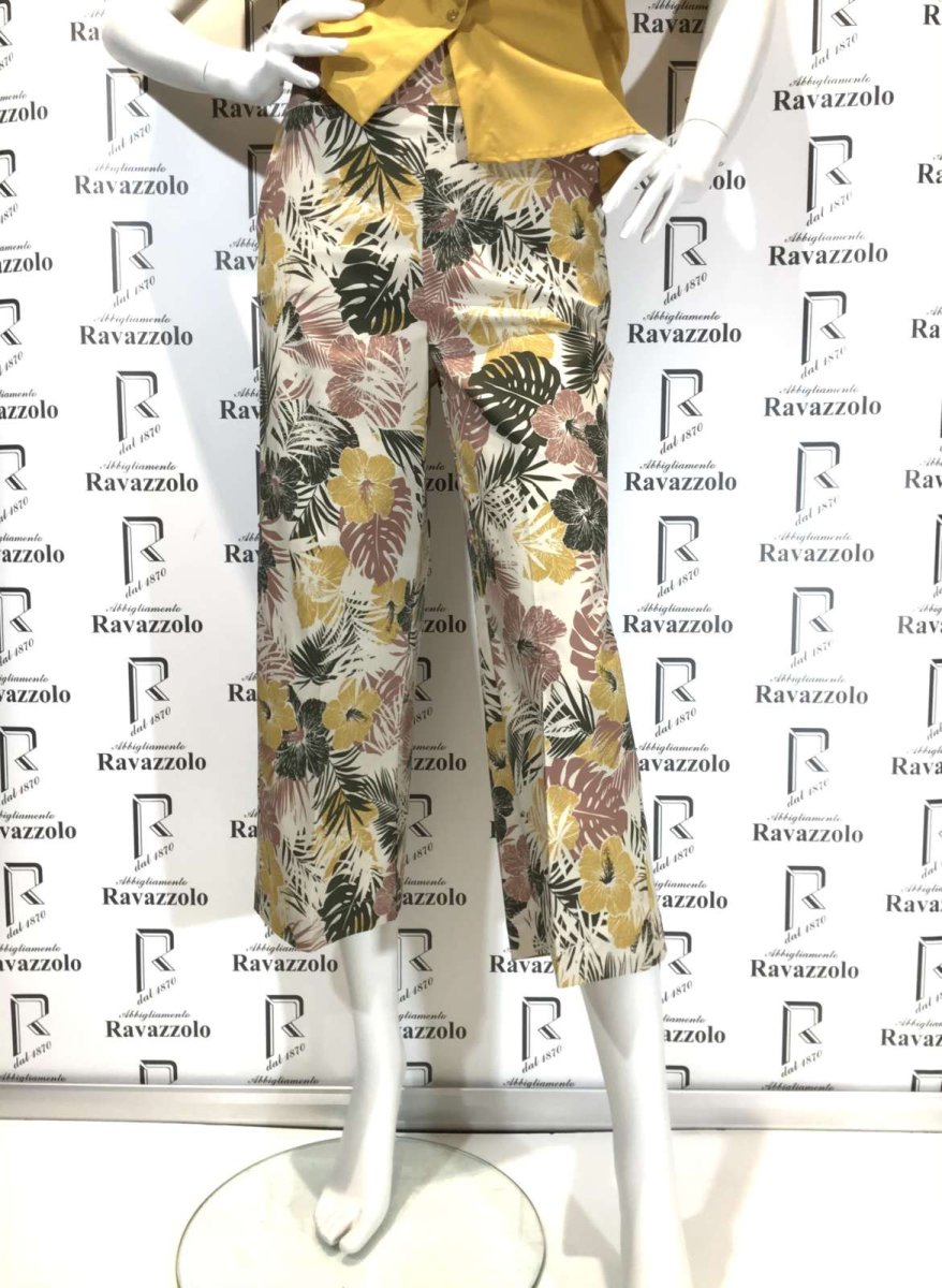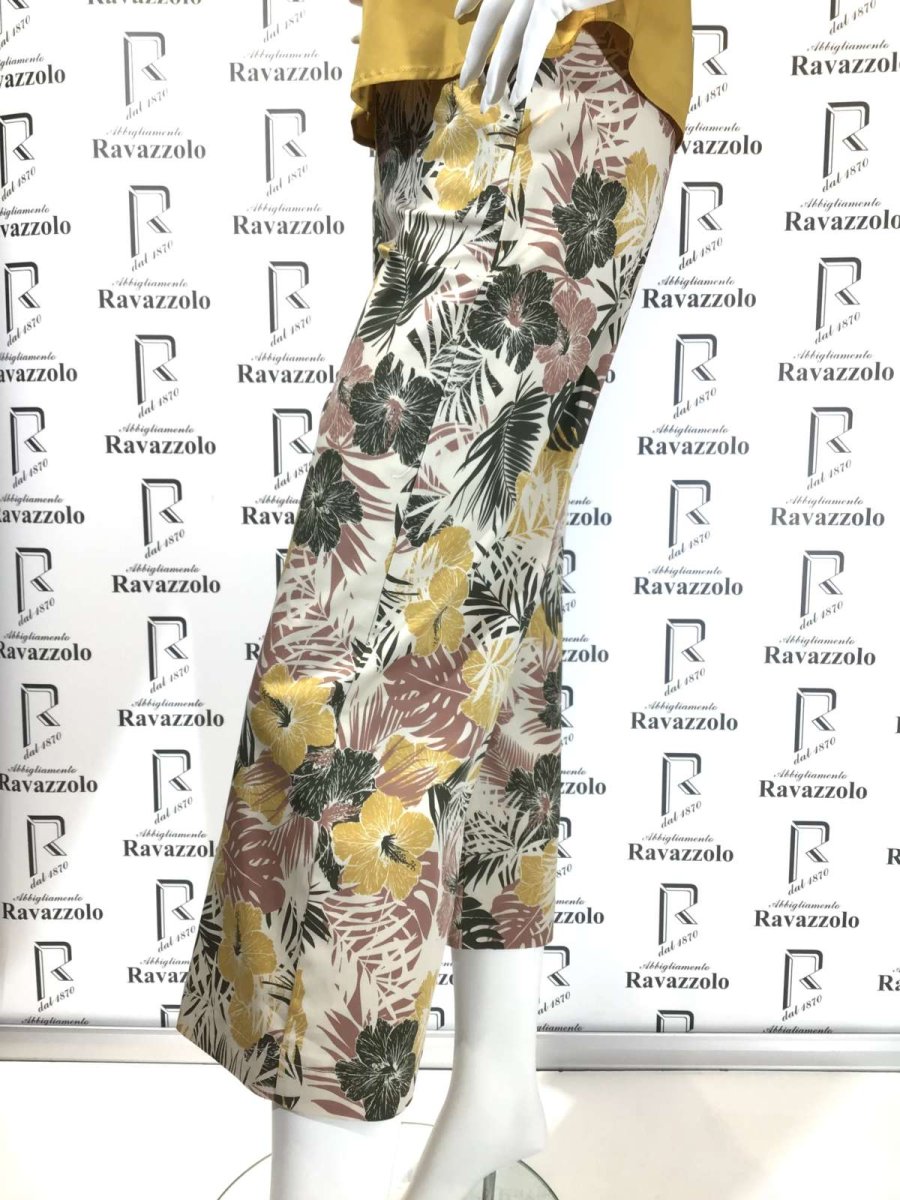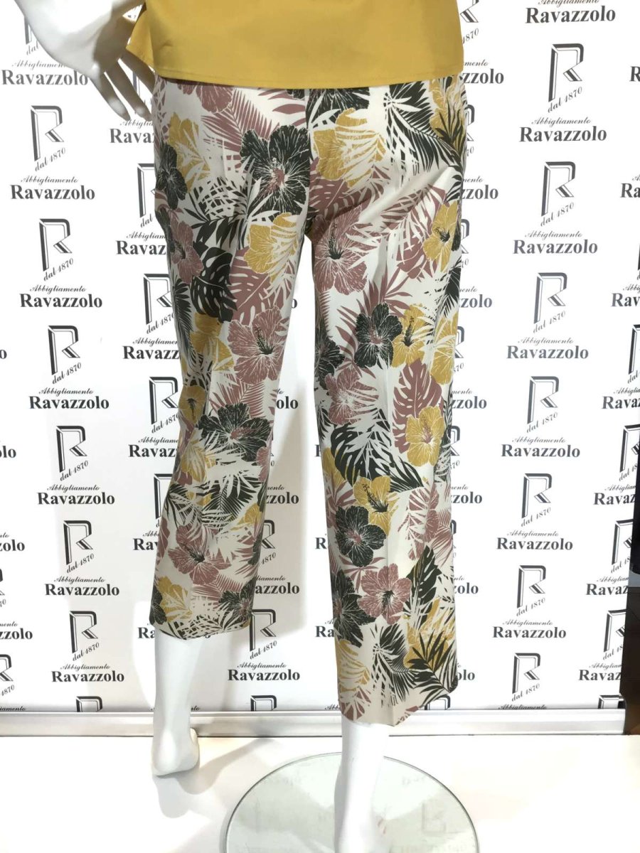 KOCCA mod. HAWA pantalone donna 100% cotone, modello palazzo, lunghezza 3/4, fantasia floreale.