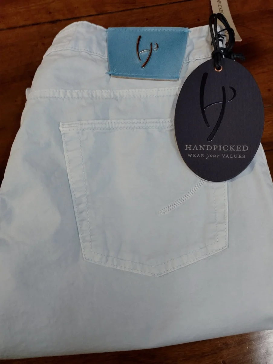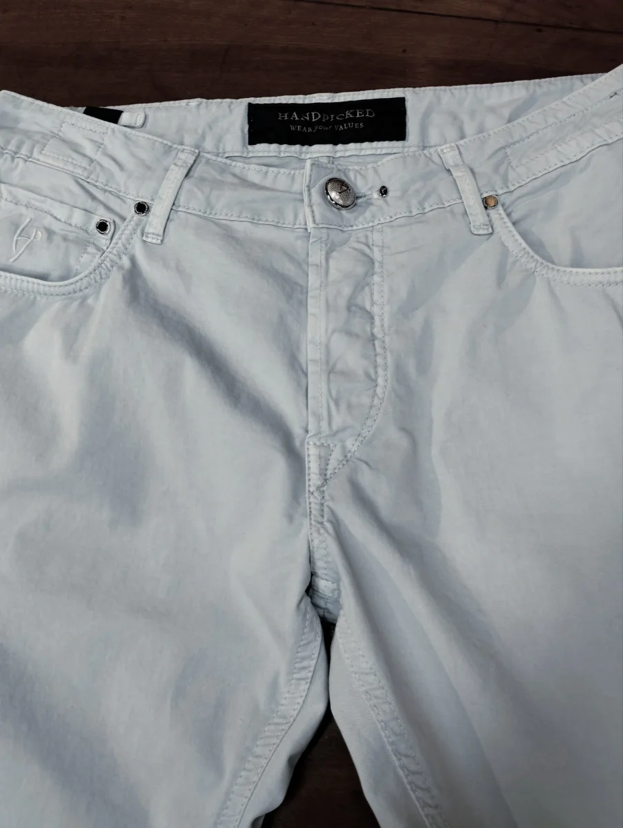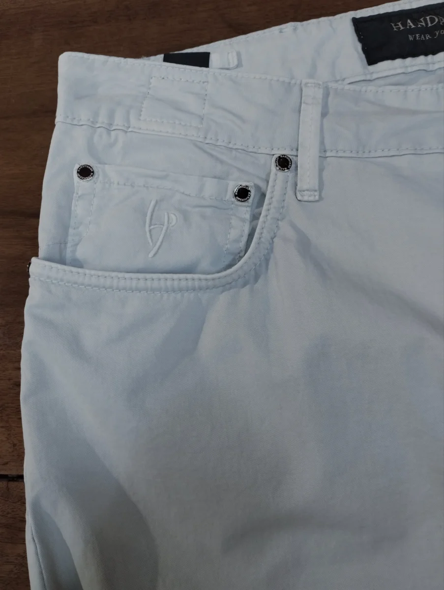 Pantalone in gabardina di cotone elasticizzato. Modello Cinque Tasche Vestibilitร Regular Cotone Supima Allacciatura con bottoni Guida alle misure: Handpicked