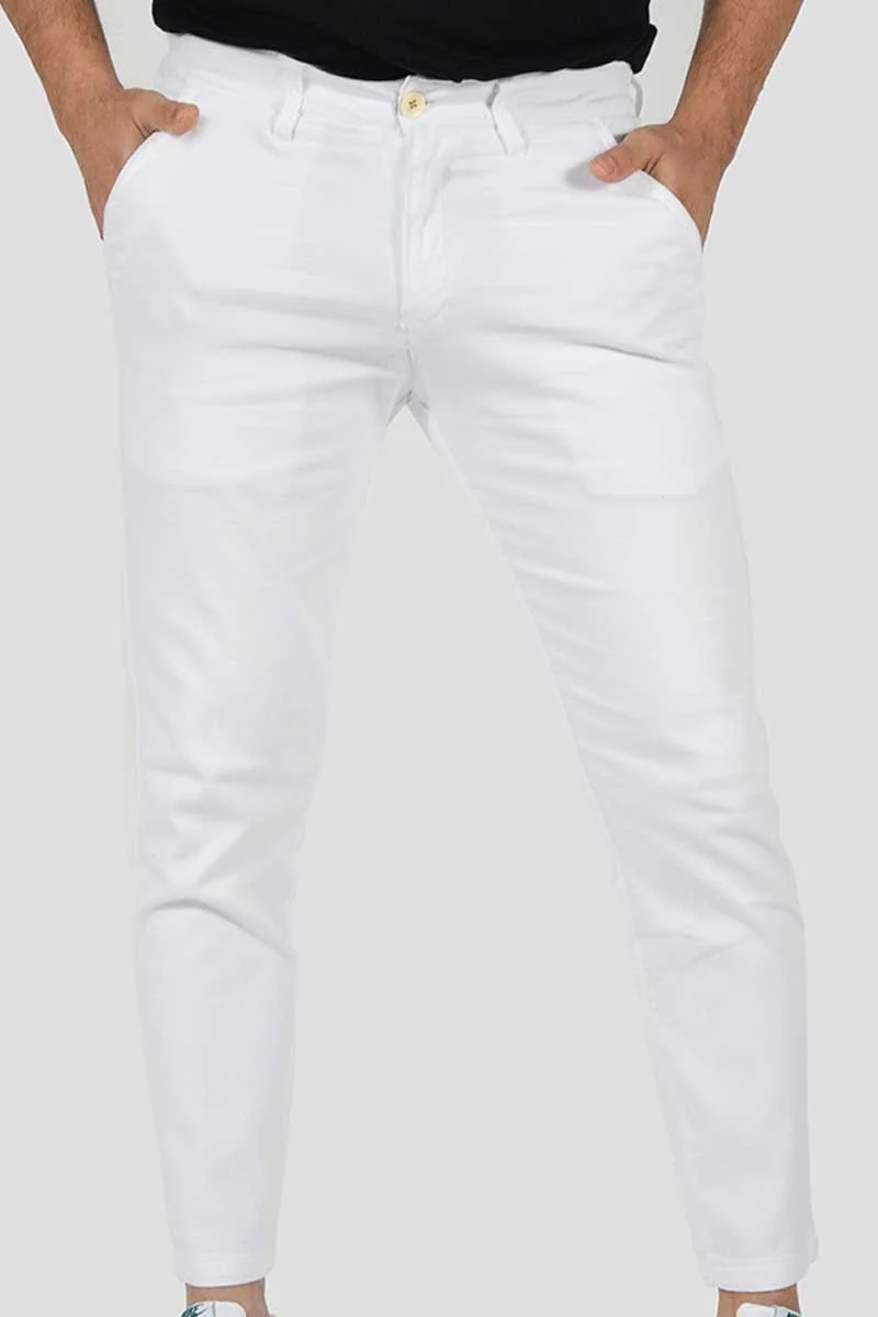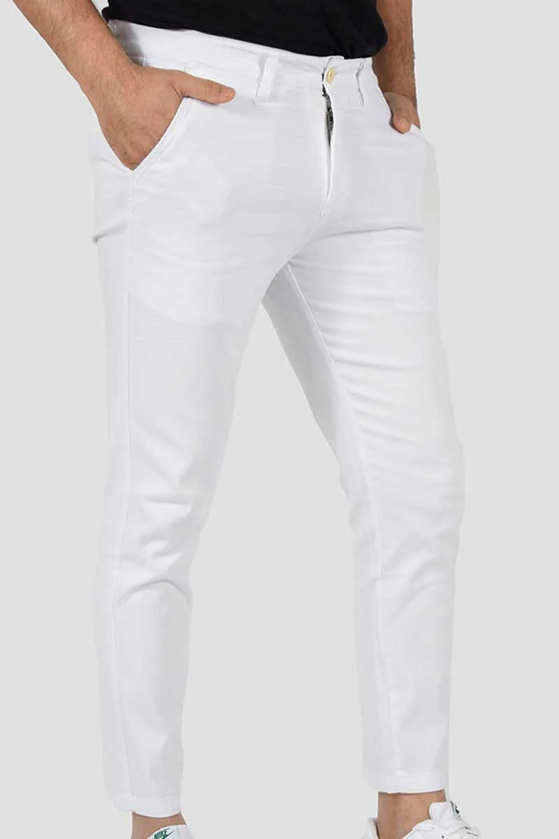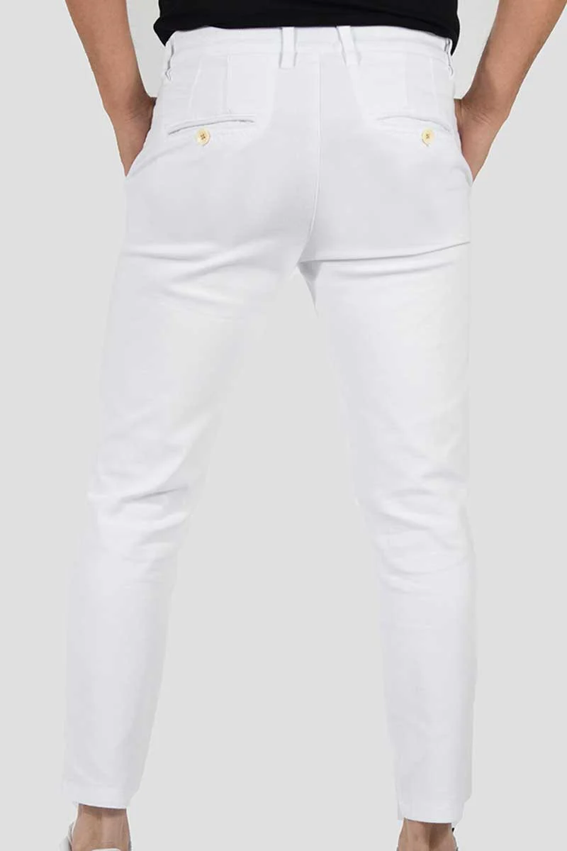 PANTALONI CAPRI FIT COLORE: Bianco COMPOSIZIONE: 98% Cotone 2% Elastan ALTEZZA MODELLO: 185 cm indossa taglia 48