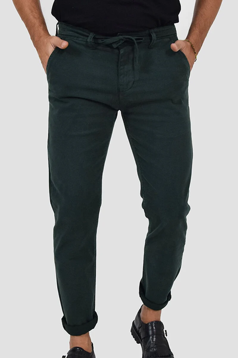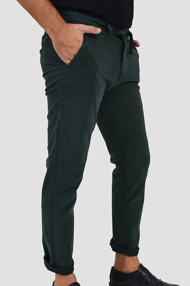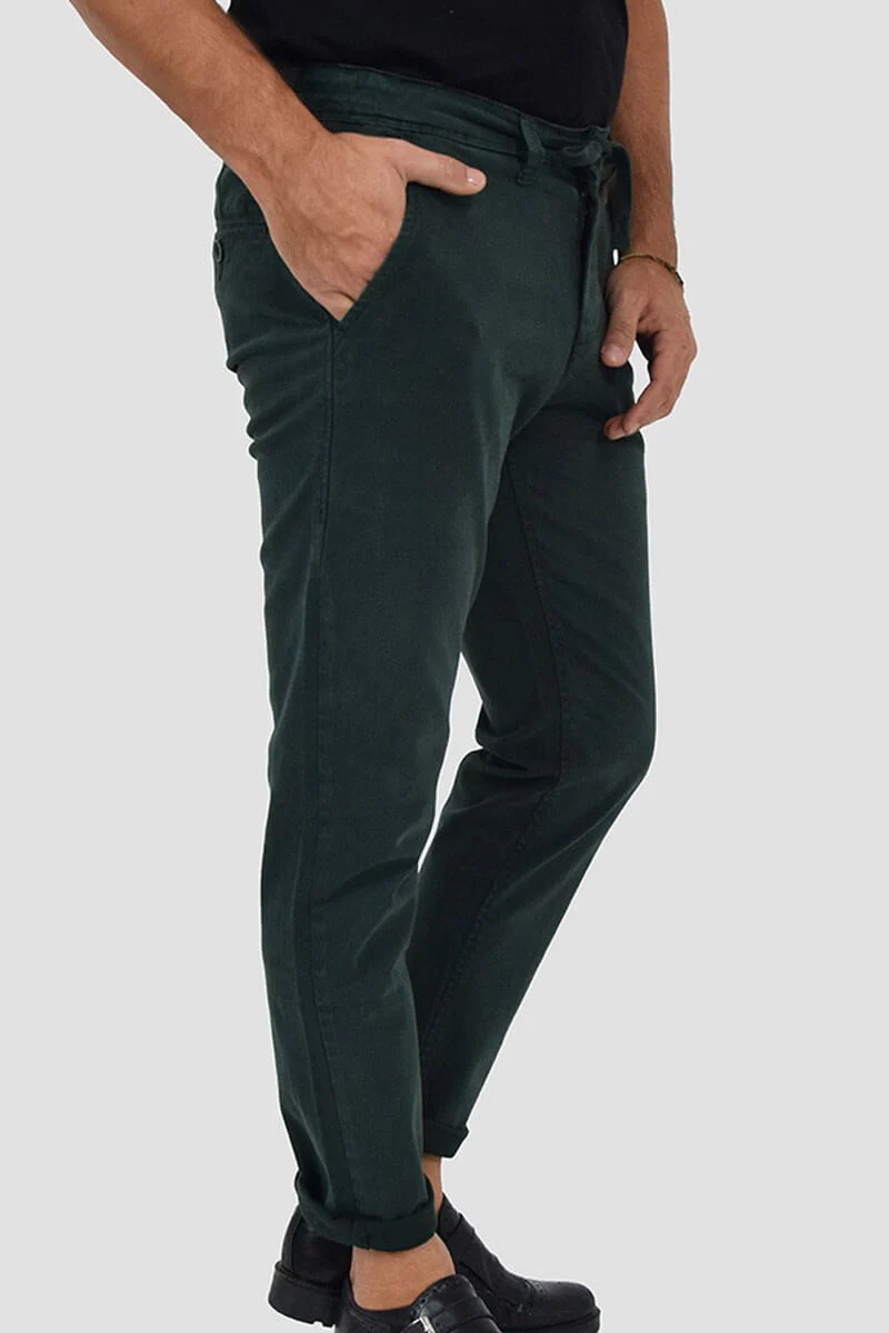 PANTALONI SLIM FIT CON VITA ELASTICIZZATA COLORE: Verde COMPOSIZIONE: 98%Cotone 2%Elastan RIFERIMENTO TAGLIA: Il modello in foto รจ alto 1,80 per 78kg e indossa la taglia 46