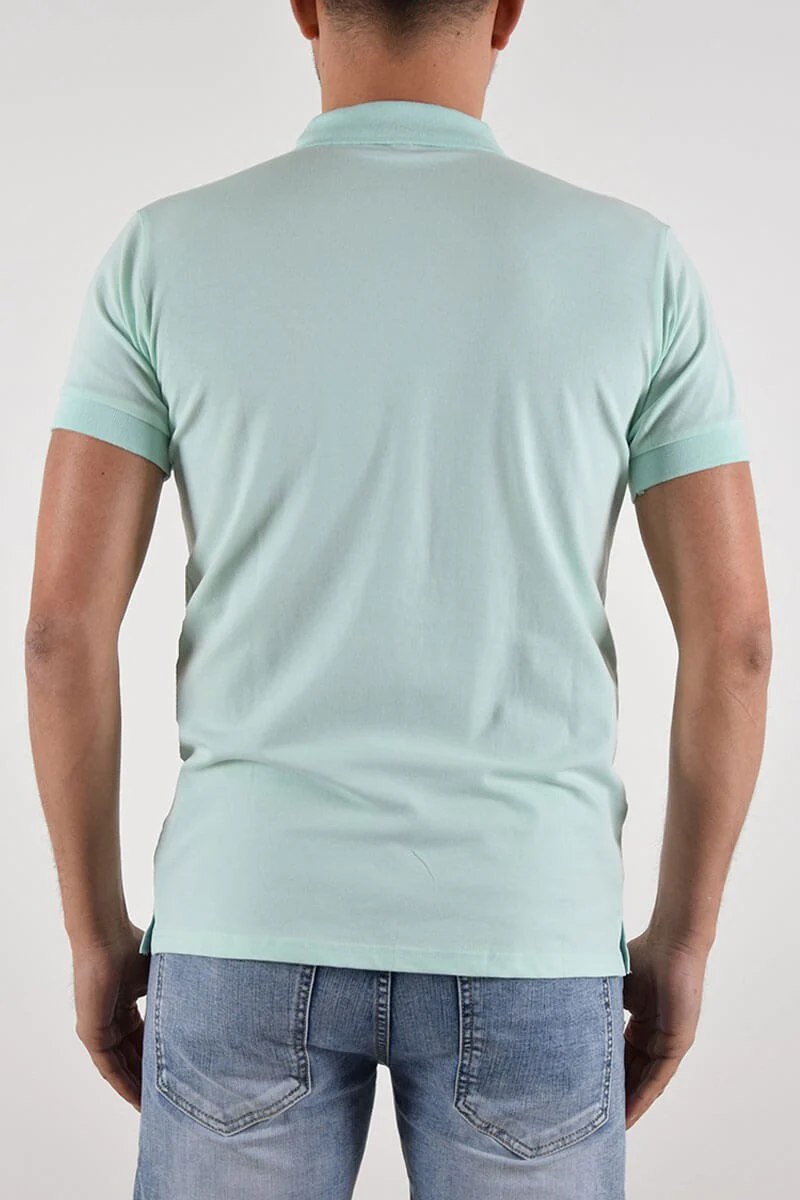 POLO IN COTONE COLORE: Verde Acqua COMPOSIZIONE: 95% Cotone 5% Elastan ALTEZZA MODELLO: 185 cm indossa TAGLIA L