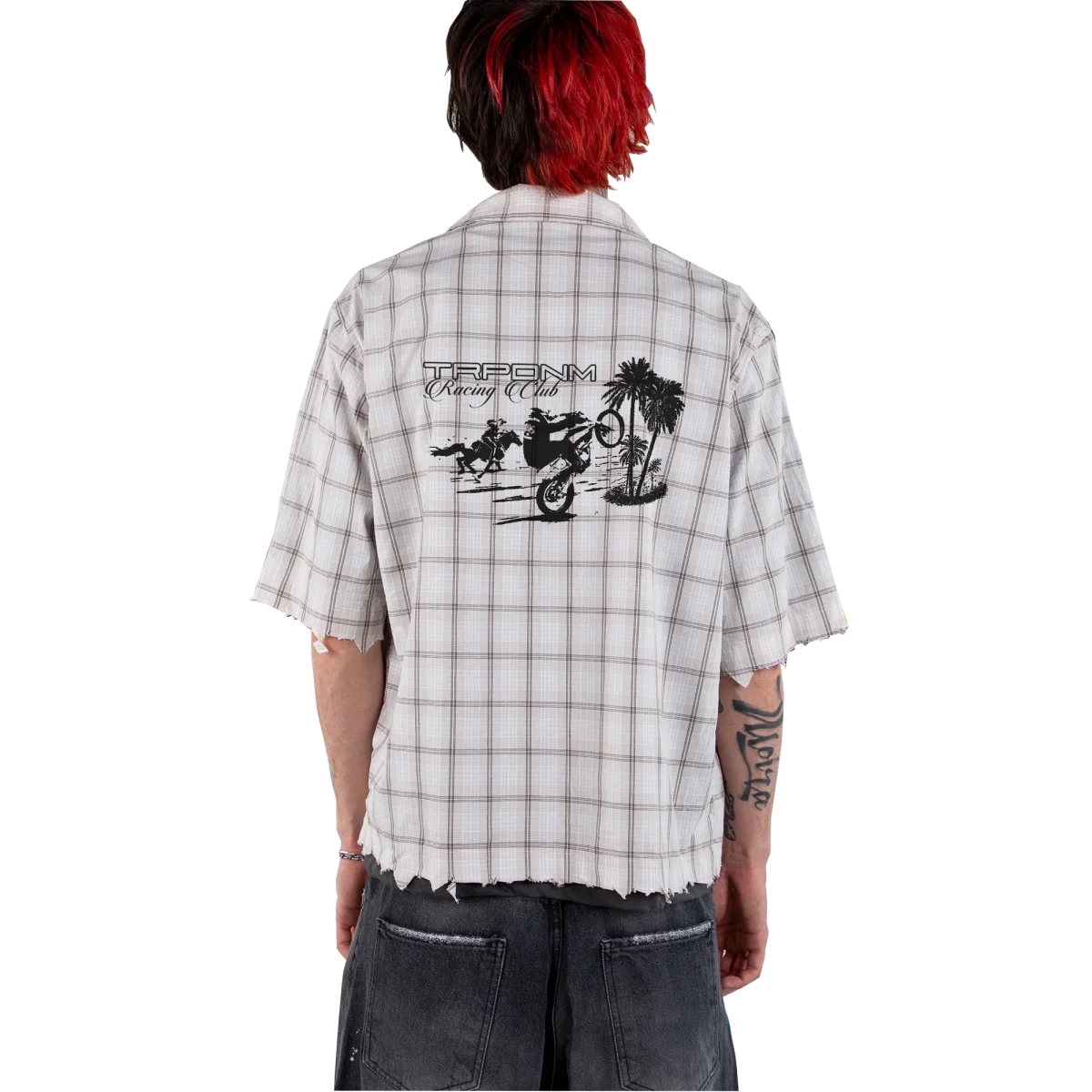 Camicia Boxy Fit in 100% Cotone “popeline”, tipicamente usato per le camice eleganti. Tramite lavaggi ed effetto ripped l’abbiamo trasformato rendendo un cotone elegante, piรน streetwear. Arricchita dalla stampa serigrafica sul retro realizzata a mano. Come ogni articolo TRPDNM la shirt รจ realizzata al 100% in Italia