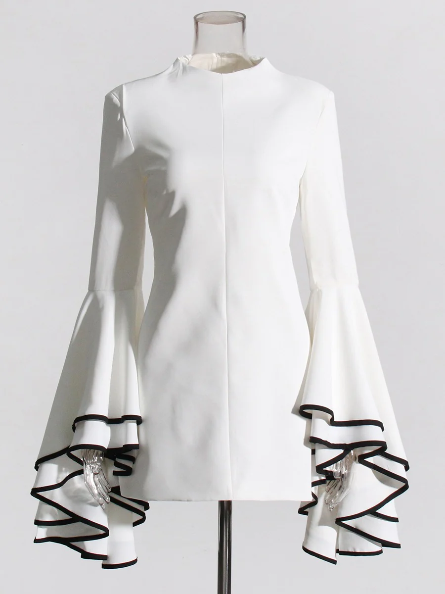 Ruffles Dresses For Women O Neck Butterfly Sleeve