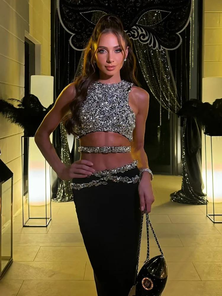 Sexy Beading Black Tank Maxi Long Two Pieces