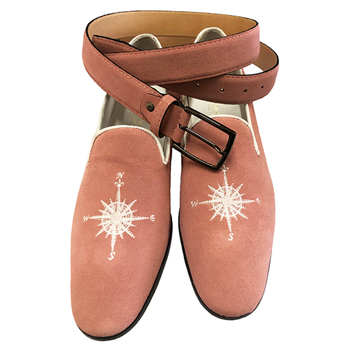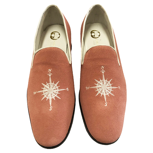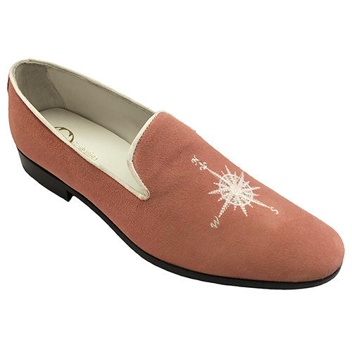 Scarpe mocassino slippers in pelle scamosciata con ricamo rosa dei venti, disponibili nei colori riferimento cartella in foto, realizzate su ordinazione personalizzabili anche con iniziali sul lato con costo aggiuntivo di 15,00 euro