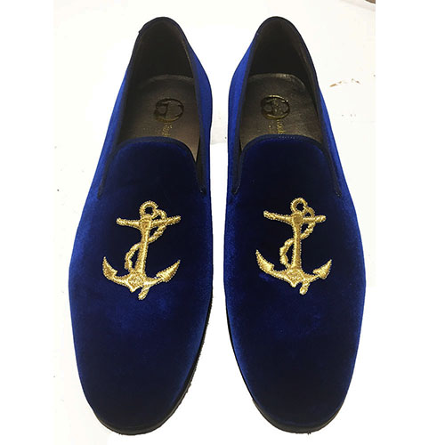 Slippers in velluto con ricamo ancora,ย disponibile dal 35 al 47 calzata comoda Italiana. Scarpe realizzate su ordinazione in laboratorio artigianale con pellami e materiali di prima scelta, tutto made in Italy. Effettuato l’ordine, specificando la taglia e il colore,ย per la realizzazione si ha bisogno di un massimo di 10 giorni lavorativi, (su richiesta si puรฒ avere la cintura nello stesso pellame con lโaggiunta di 35,00 euro). Materiali: tomaia in velluto, fodera in pelle, plantare in pelle con poron per un miglior confort e suola in cuoio costruita e cucita blake. Disponibili in tutti i colori della cartella. Si puรฒ scegliere il colore della scarpa, la fodera in pelle o raso, il colore del ricamo e il colore del battistrada della suola, (disponibili colori della cartella).